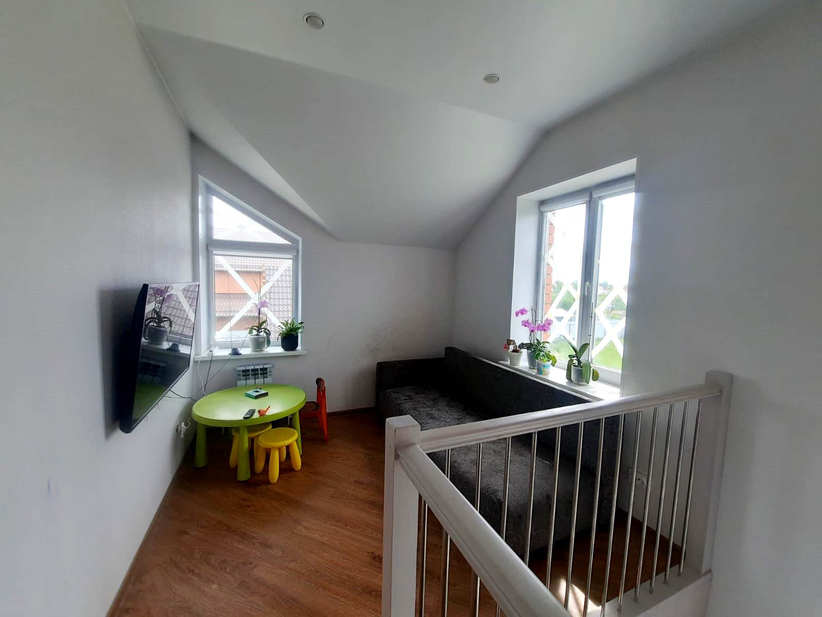 В доме выполнен качественный ремонт, пластиковые окна, биметаллические батареи, современные межкомнатные двери, на полу кварцвиниловый ламинат, натяжные потолки. В доме два санузла на каждом этаже в плитке. Лестница выполнена из массива сосны.