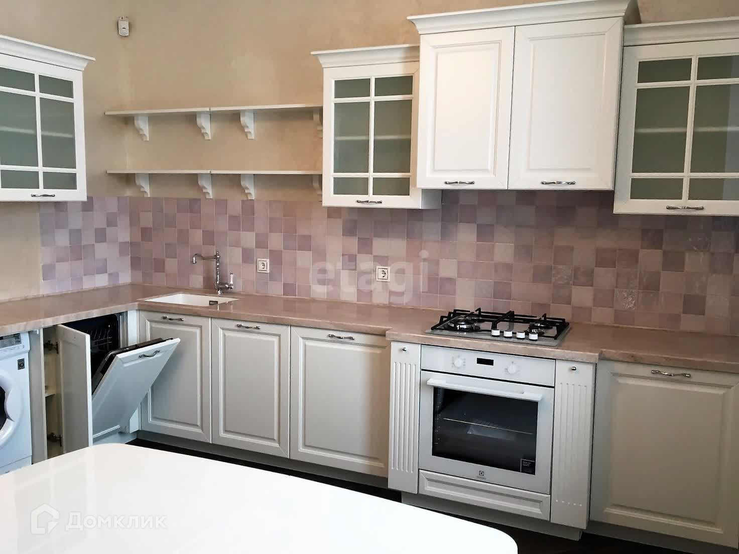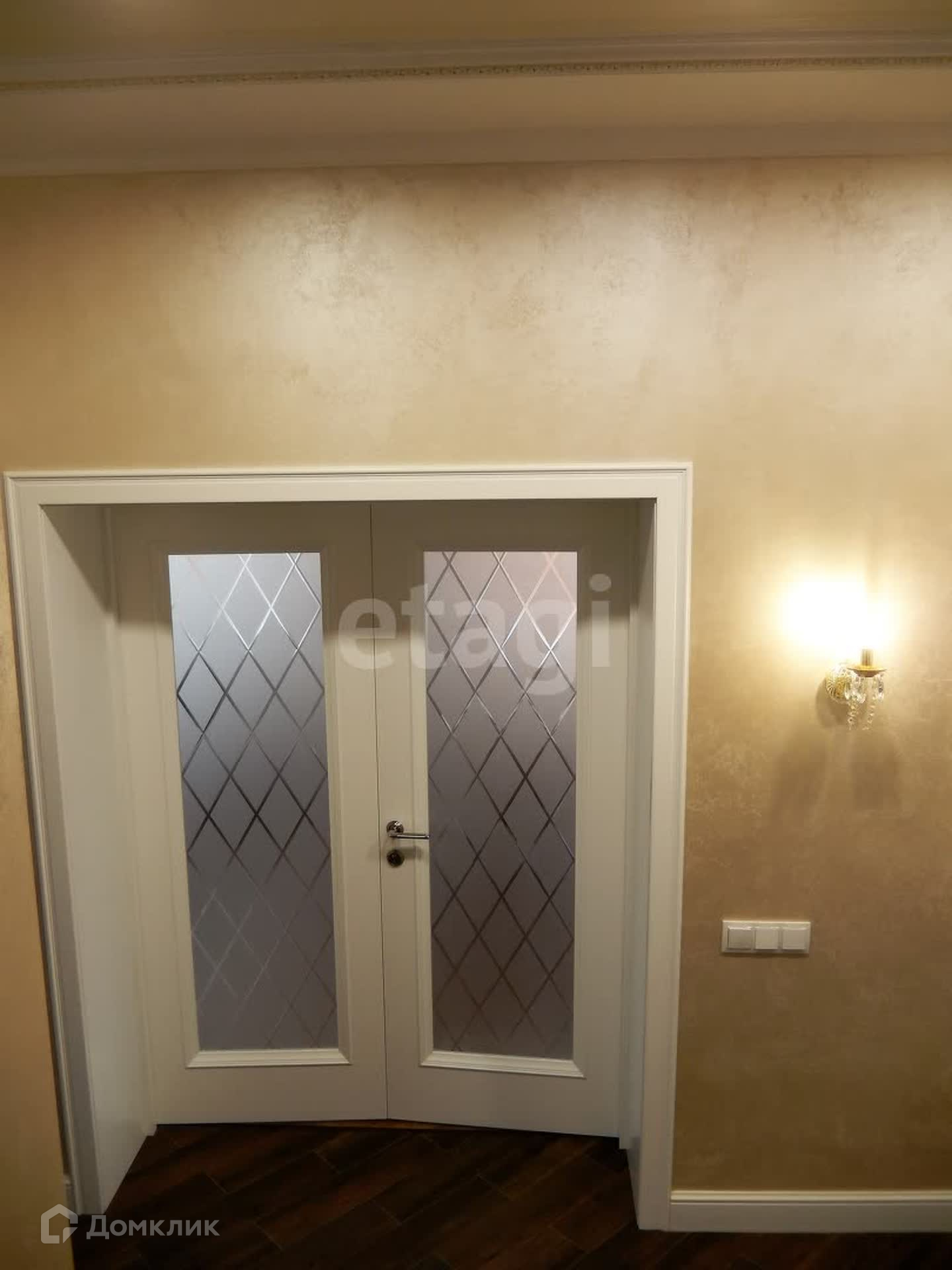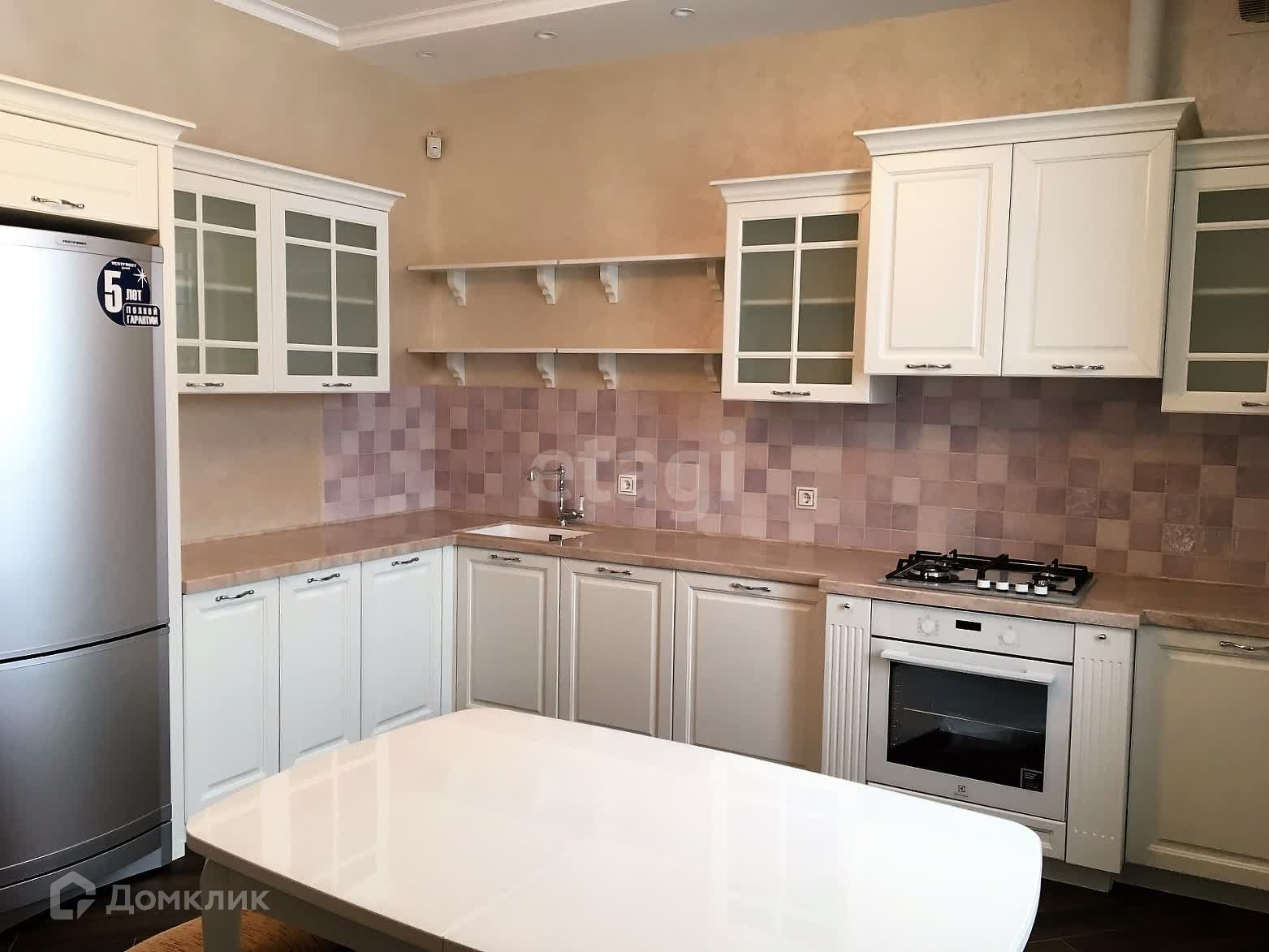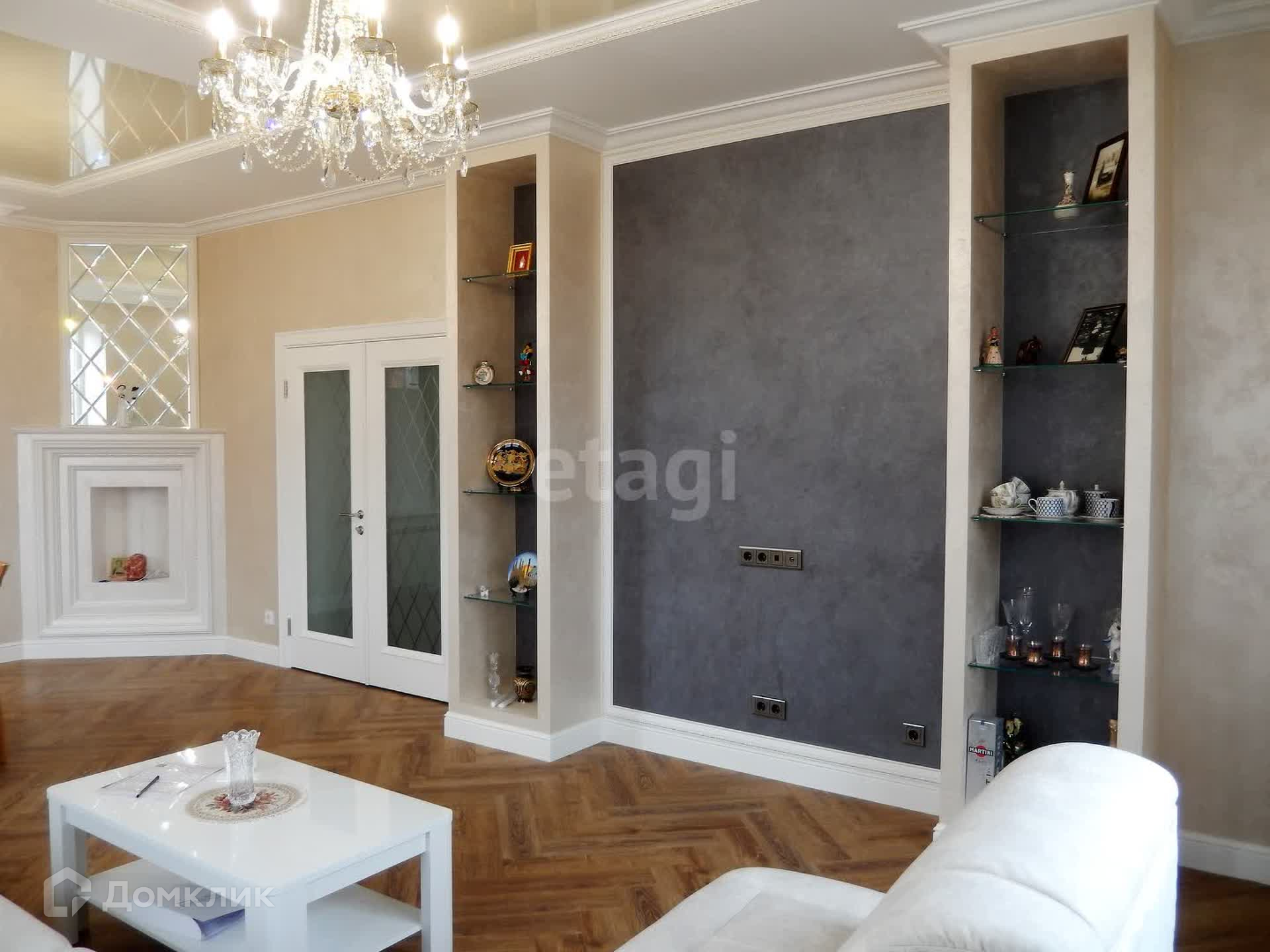 Внутренняя отделка выполнена по индивидуальному дизайн-проекту из качественных дорогих строительных материалов. Обе ванные комнаты выложены плиткой производства Испания, отделка внутренних стен выполнена из фактурной штукатурки (производства Италии и России) первый этаж и лестничный марш, второй этаж - обои производства Италия, первый этаж полы плитка и ламинат (производства Франция), по всему периметру 1-го этажа теплый пол. Плиткой пр-ва Италия выложена рабочая стена кухни, многоуровневый потолок (штукатурка, гипсокартон, натяжные тканевые потолки).