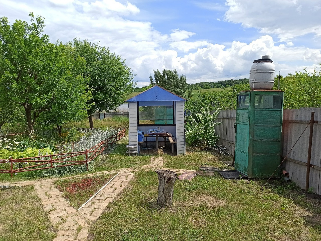 Свет и вода круглый год. Есть своя скважина. Участок ровный с видом на воду (есть отдельный выход в сторону прибрежной зоны). Обрабатывается. Много фруктовых деревьев, виноград. Полностью огорожен по периметру добротным забором. На участке есть летний душ, туалет, хоз постройка, маленькая летняя кухня, беседка. ВЪЕЗД НА УЧАСТОК через ворота.