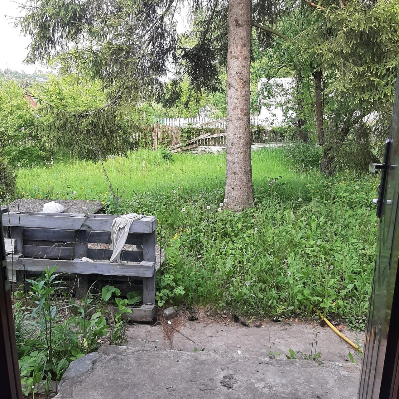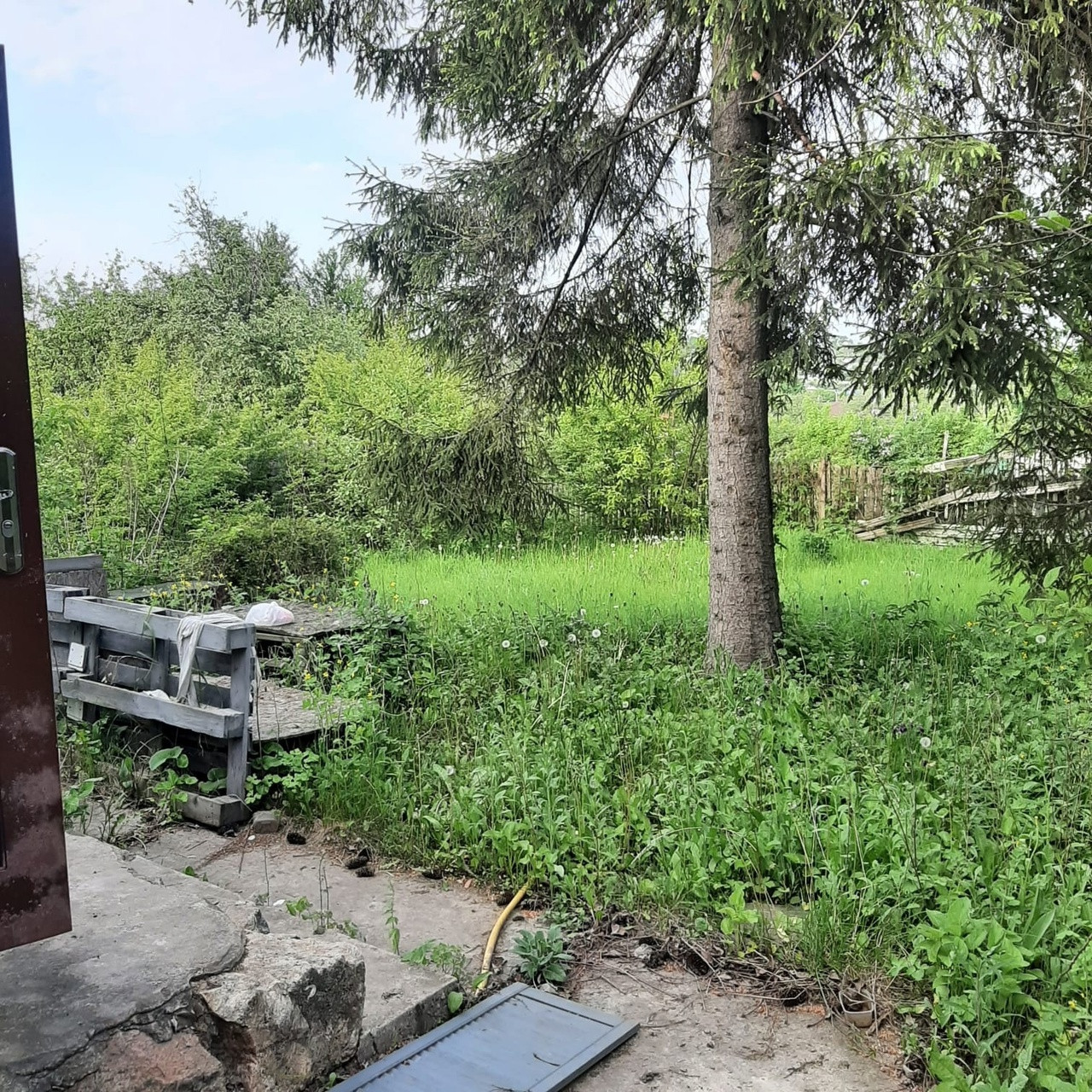 Частично остаётся мебель: кухня, бытовая техника, стол, стеллажи. Садовая мебель, гамак. На участке есть сарай, остаются некоторые стройматериалы. Плодовые насаждения: яблони, малина, вишня, черешня, орехи, цветы, высокая ель, туя. Высажен газон.