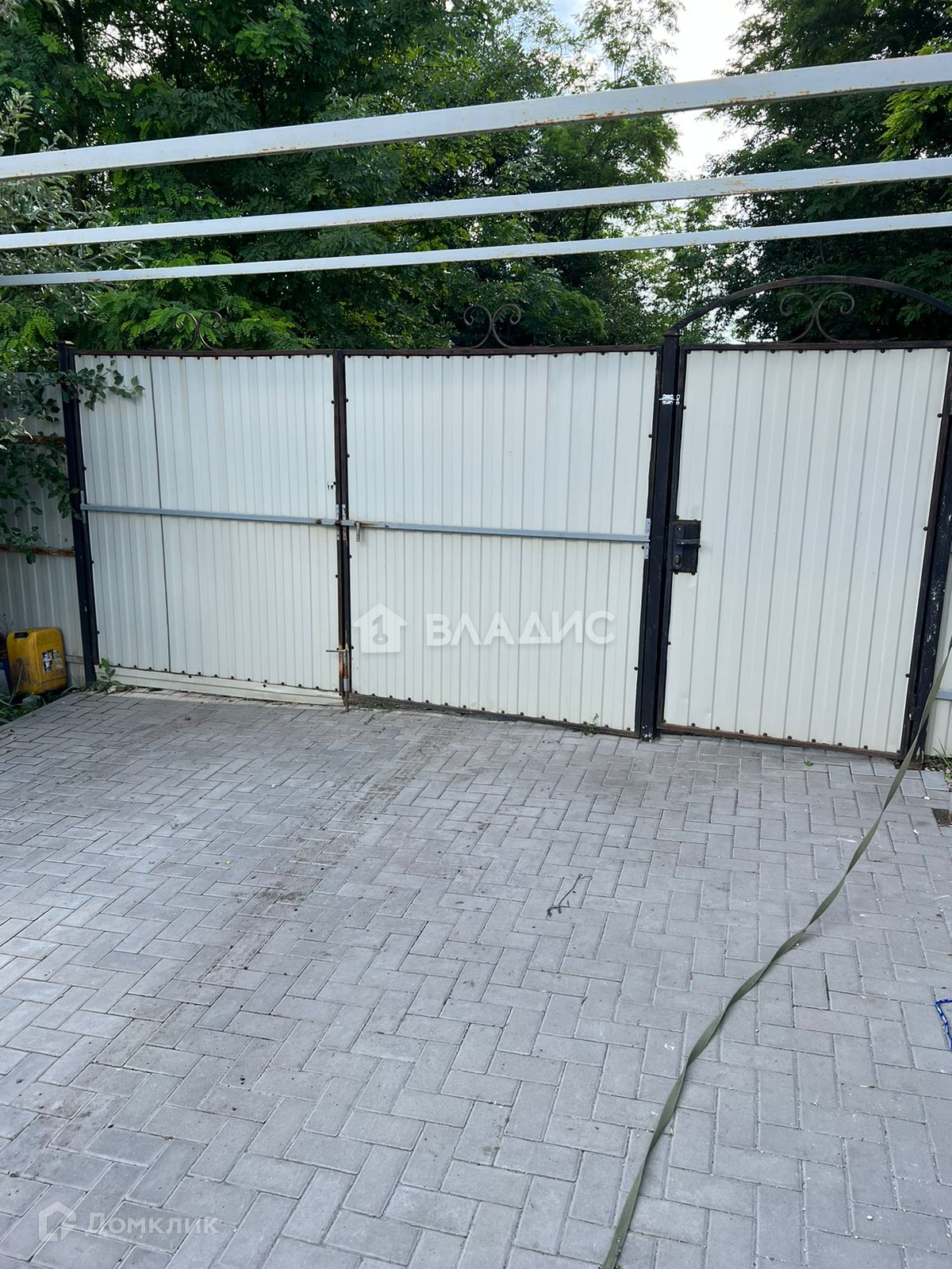 Участок 4 сотки, установлена теплица, есть место для машины, двор выложен плиткой. Участок обнесен качественным железным забором, есть ворота.