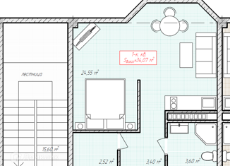 1-ком. квартира на продажу, 34.7 м2, улица 60 лет Октября, 18