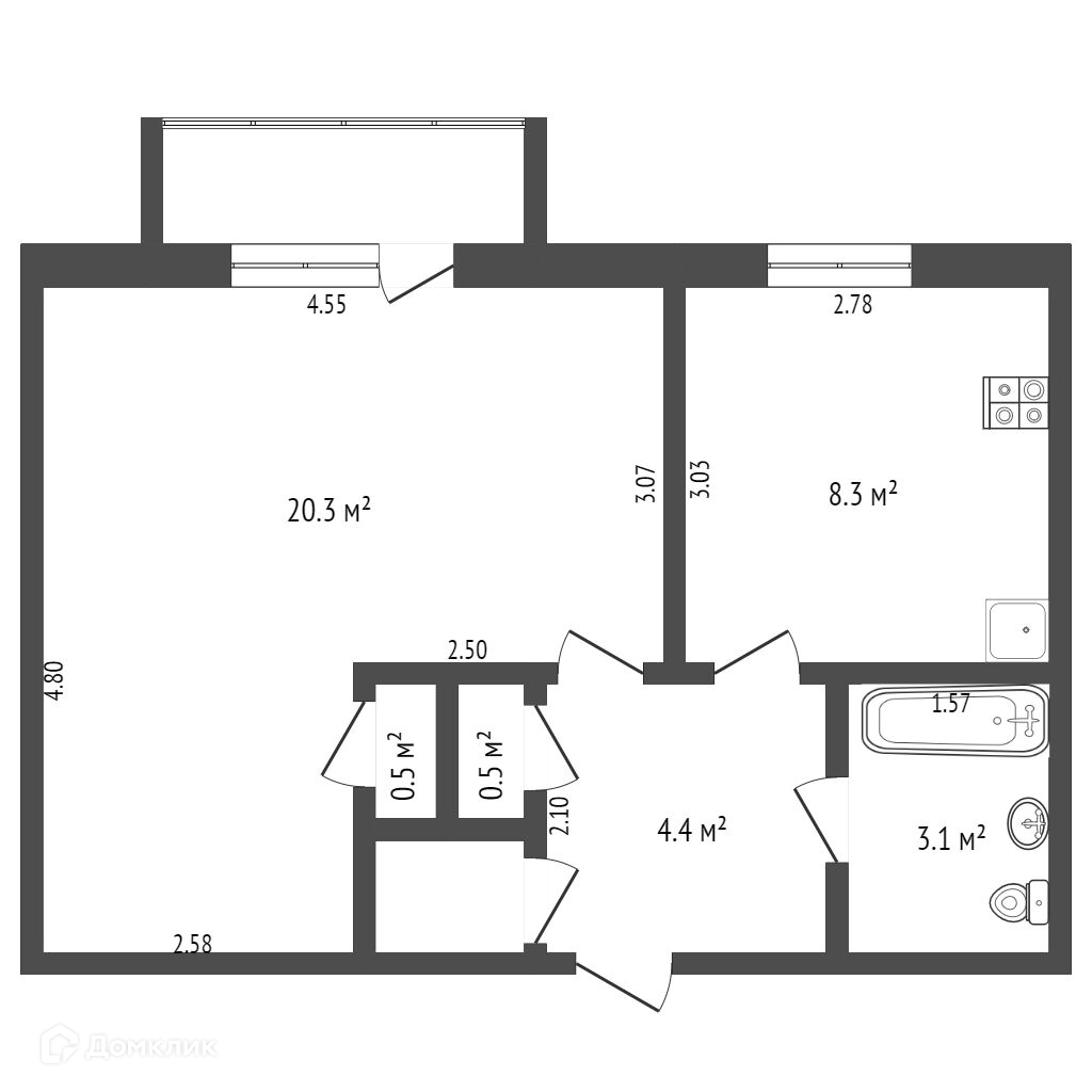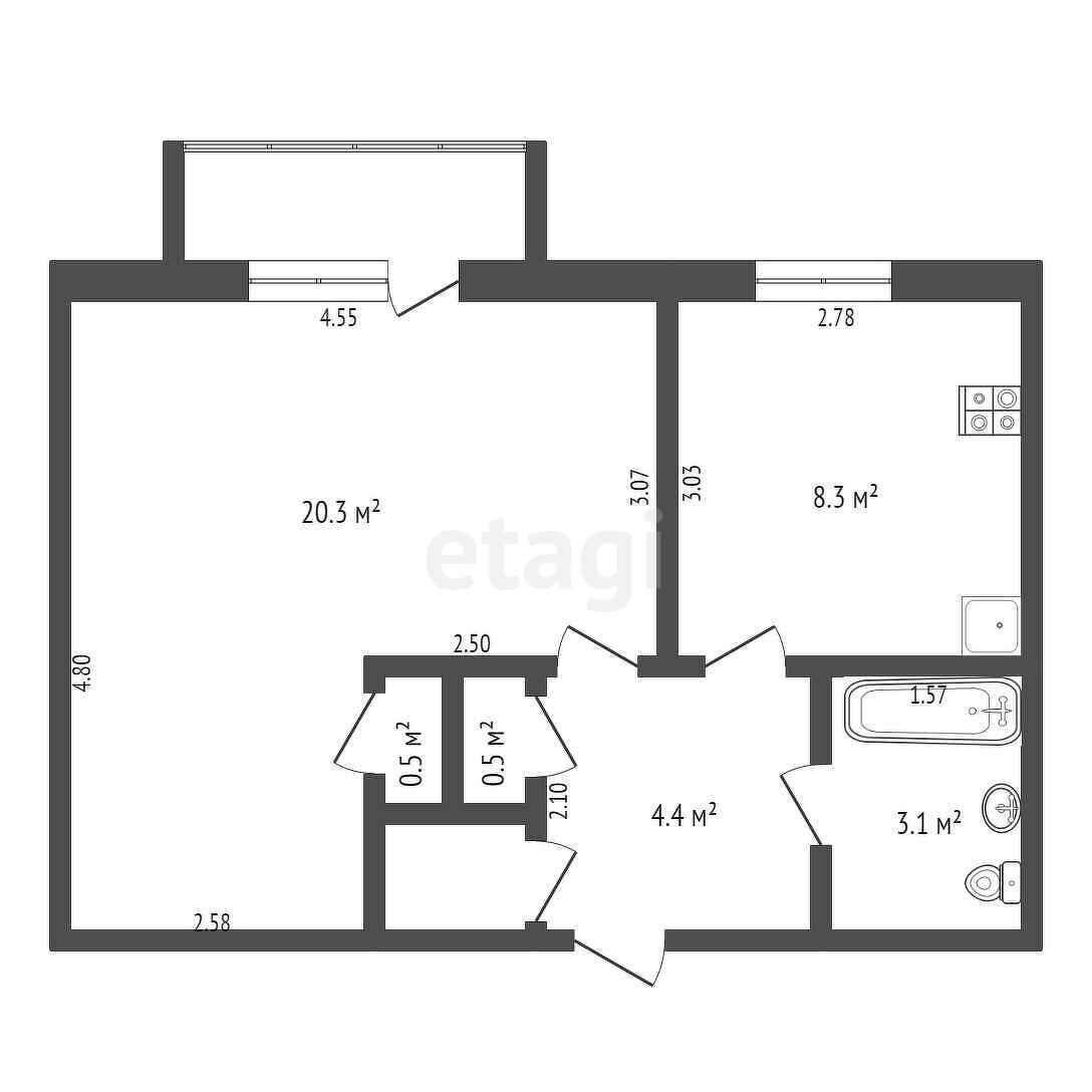 Квартира большая, просторная, комната выполнена в стиле Альков, можно разделить на две зоны (гостинную и спальню), есть встроенный шкаф (под гардероб), по желанию можно разделить на две комнаты. В прихожей большая кладовка и встроенный шкаф.