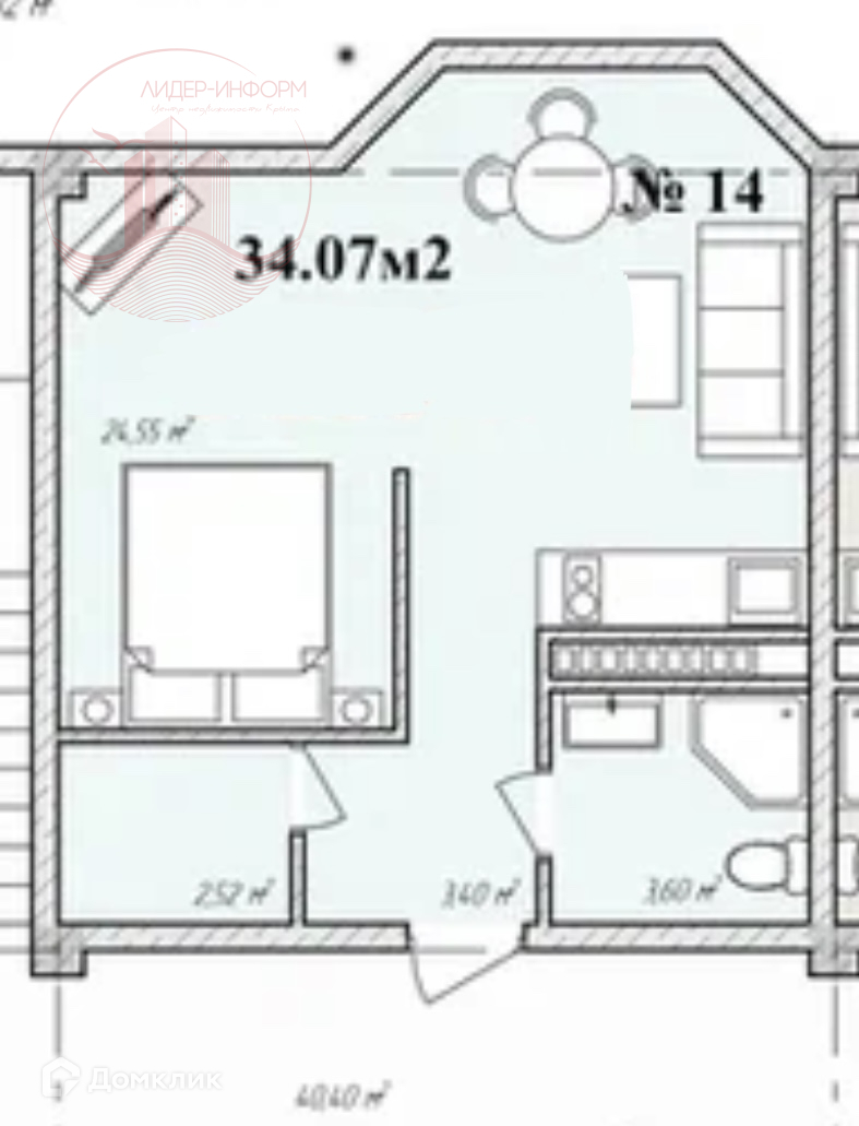 Общая площадь 34.07 м2