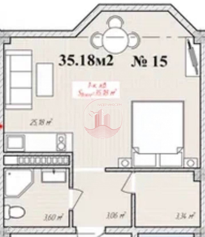 Общая площадь 35.18 м2