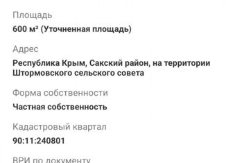 Продается земельный участок 6 соток рядом с. Штормовое. Участок в собственности, кадастровый паспорт РФ, проведено межевание. Возможен выкуп смежных участков. Категория земель: Земли сельскохозяйственного назначения. Разрешённое использование: Ведение личного подсобного хозяйства на полевых участках. На массиве стоят столбы под свет и сделана разводк... |