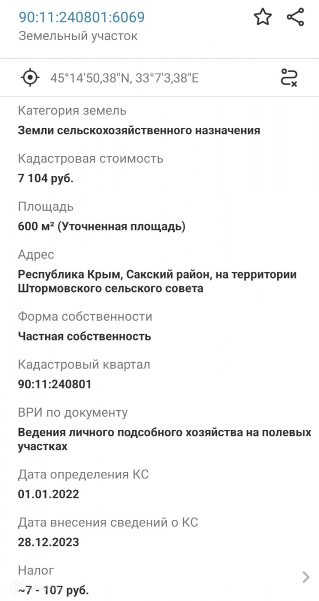 Продаётся участок в живописном районе Республики Крым, в посёлке Штормовое. Этот участок имеет юридический статус личного подсобного хозяйства, что обеспечивает его владельцу дополнительные возможности для строительства и использования по своему усмотрению. Участок приватизирован, что гарантирует его законную собственность и обеспечивает все необходимые документы для сделки.
