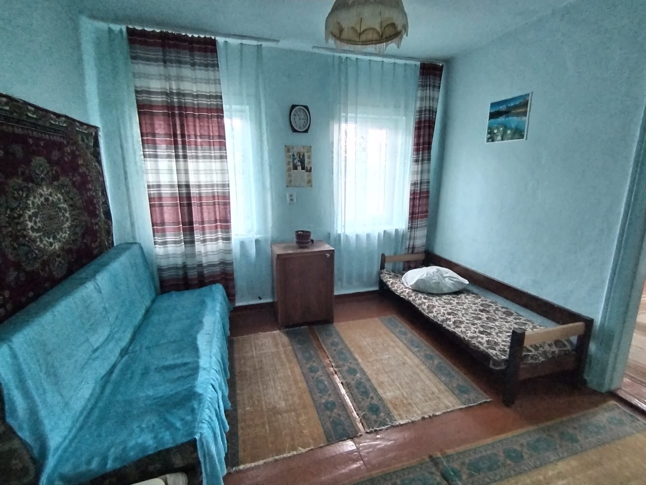 Саманный дом, 4 комнаты, коридор, кладовка, документы готовы на газ, за подключение всё оплачено. В хорошем состоянии. Во дворе сад, сарай. В посёлке есть школа, садик, амбулатория.