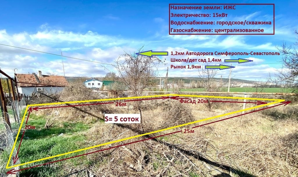 До остановки общественного транспорта 30 метров. Заезд с трассы 5-й км – Инкерман, либо с Ялтинской трассы, проездом через село Хмельницкое.