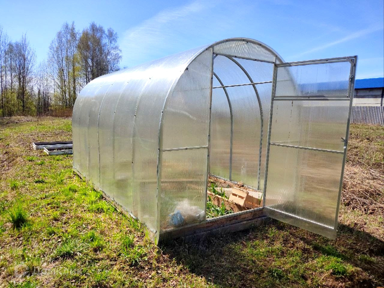 Бонус при покупке квартиры - земельный участок, расположенный во дворе дома. Участок ухоженный, есть плодовые деревья и кустарники. Также на участке установлены две новые теплицы. Земельный участок в собственности!