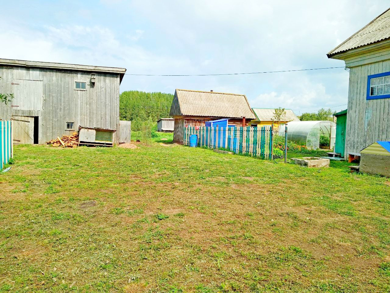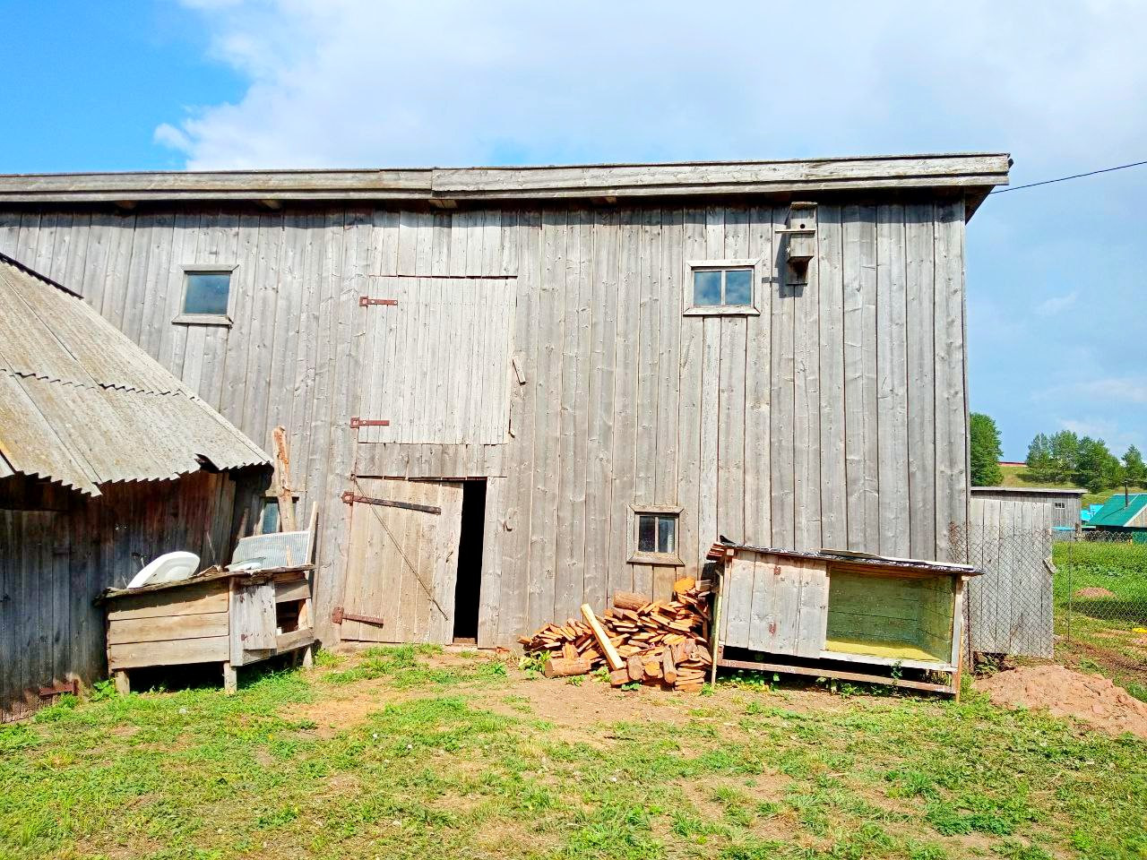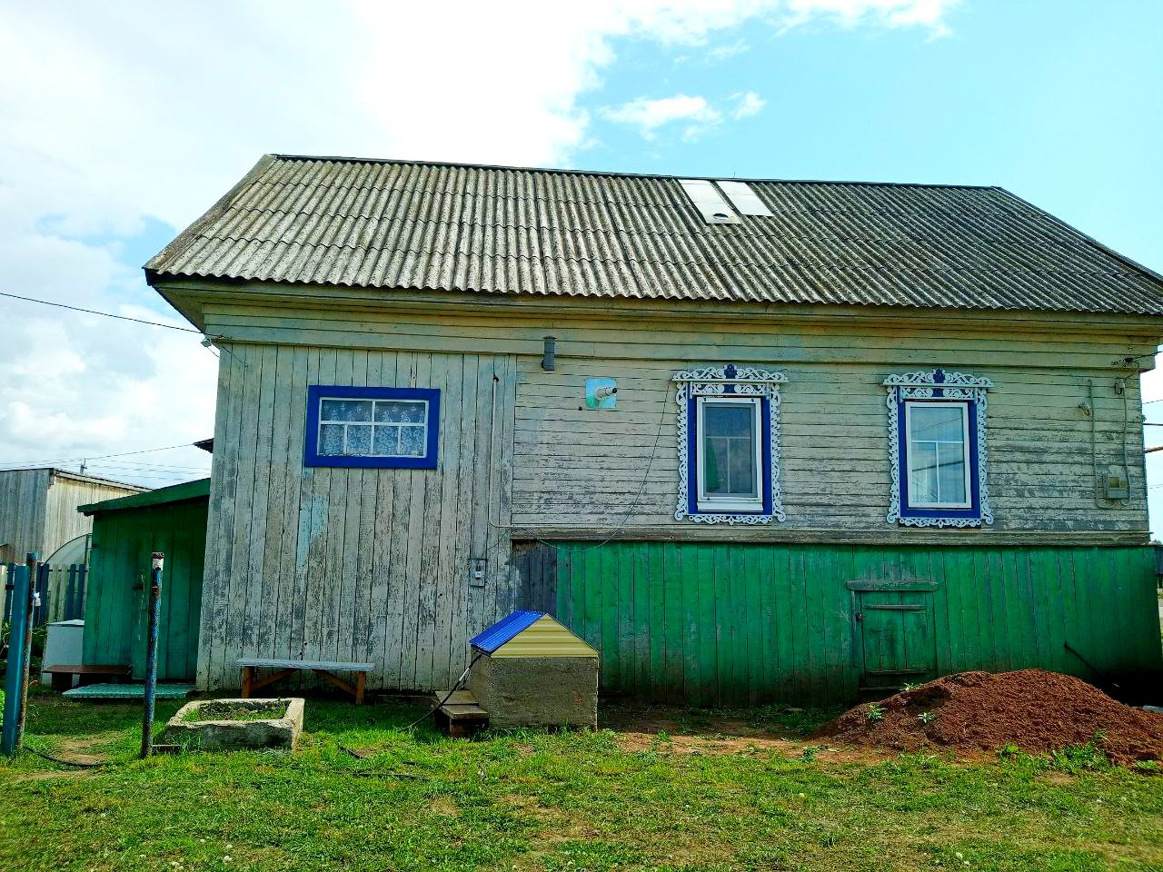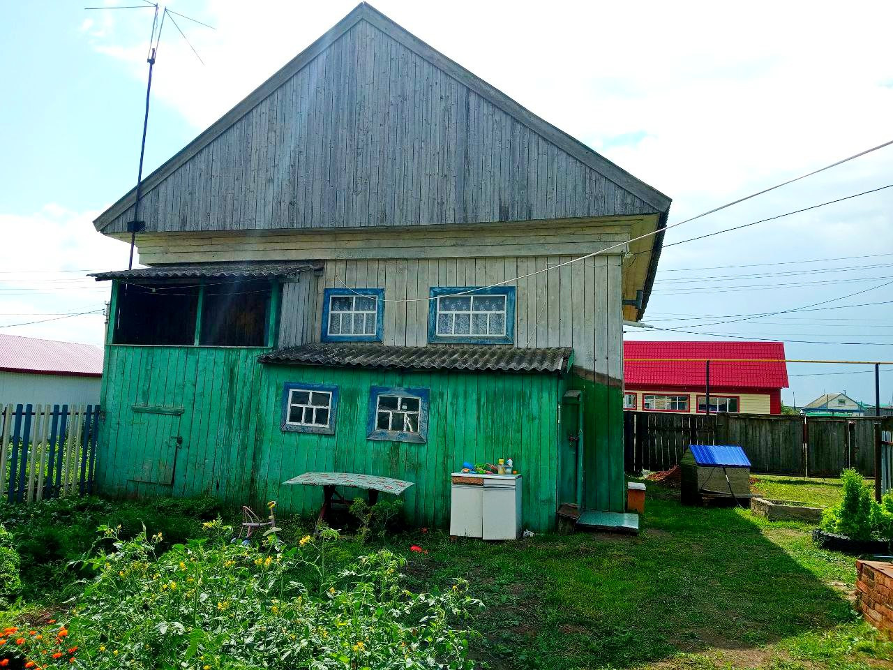 Крепкий деревянный дом, обшитый. Дорога асфальт.