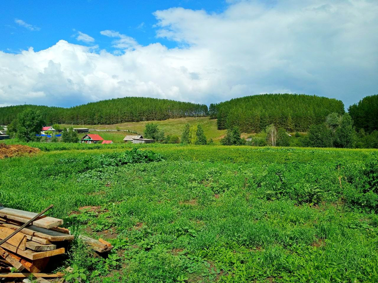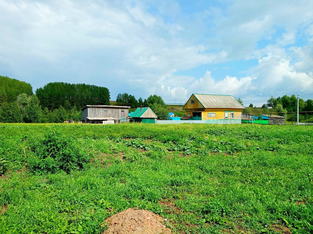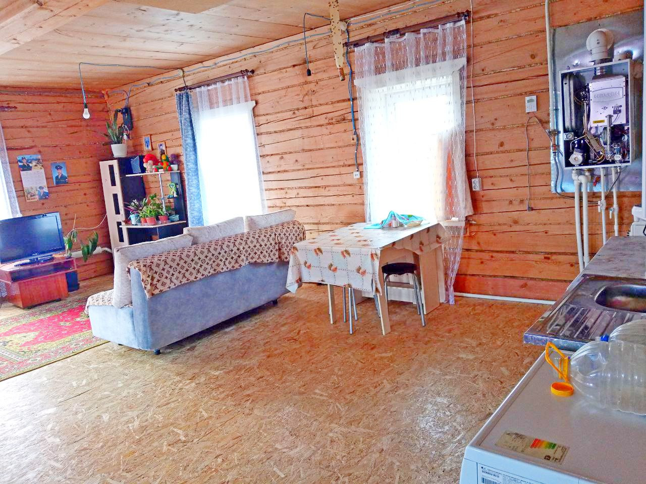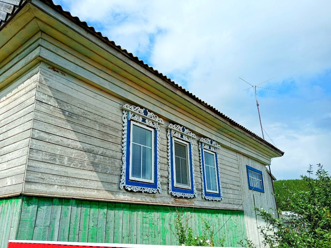 Крепкий деревянный дом, обшитый. Дорога асфальт.