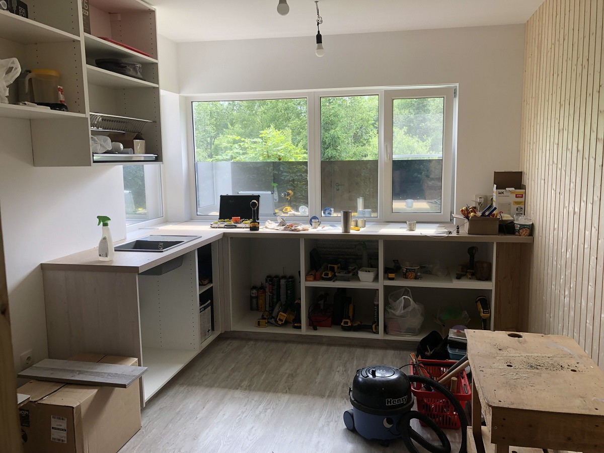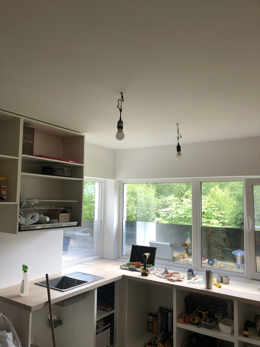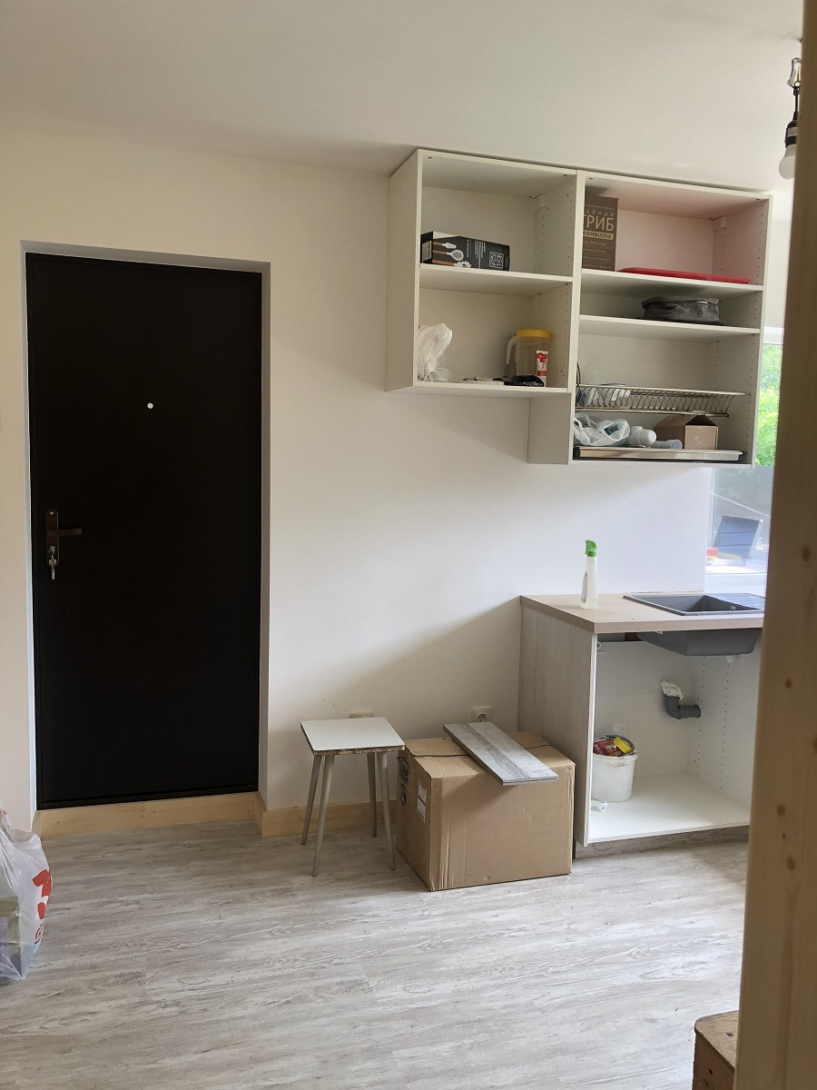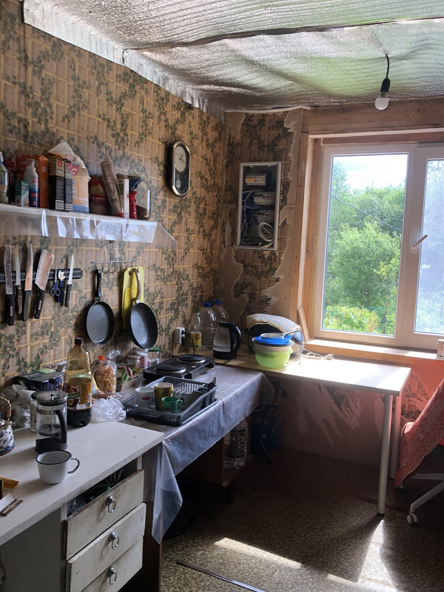 На высоком первом этаже - находится веранда, кухня и две комнаты. Кухонная мебель новая. Окна на кухне покрыты солне-отражающей пленкой, вид из окон в сад. Фильтры воды-установлены. В ванной комнате - бойлер, туалет, гигиенический душ и ванная .