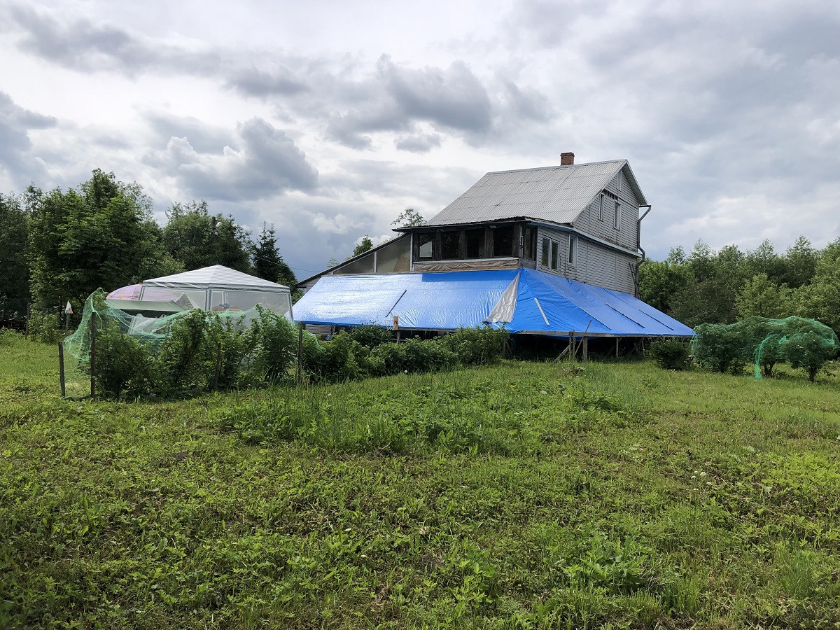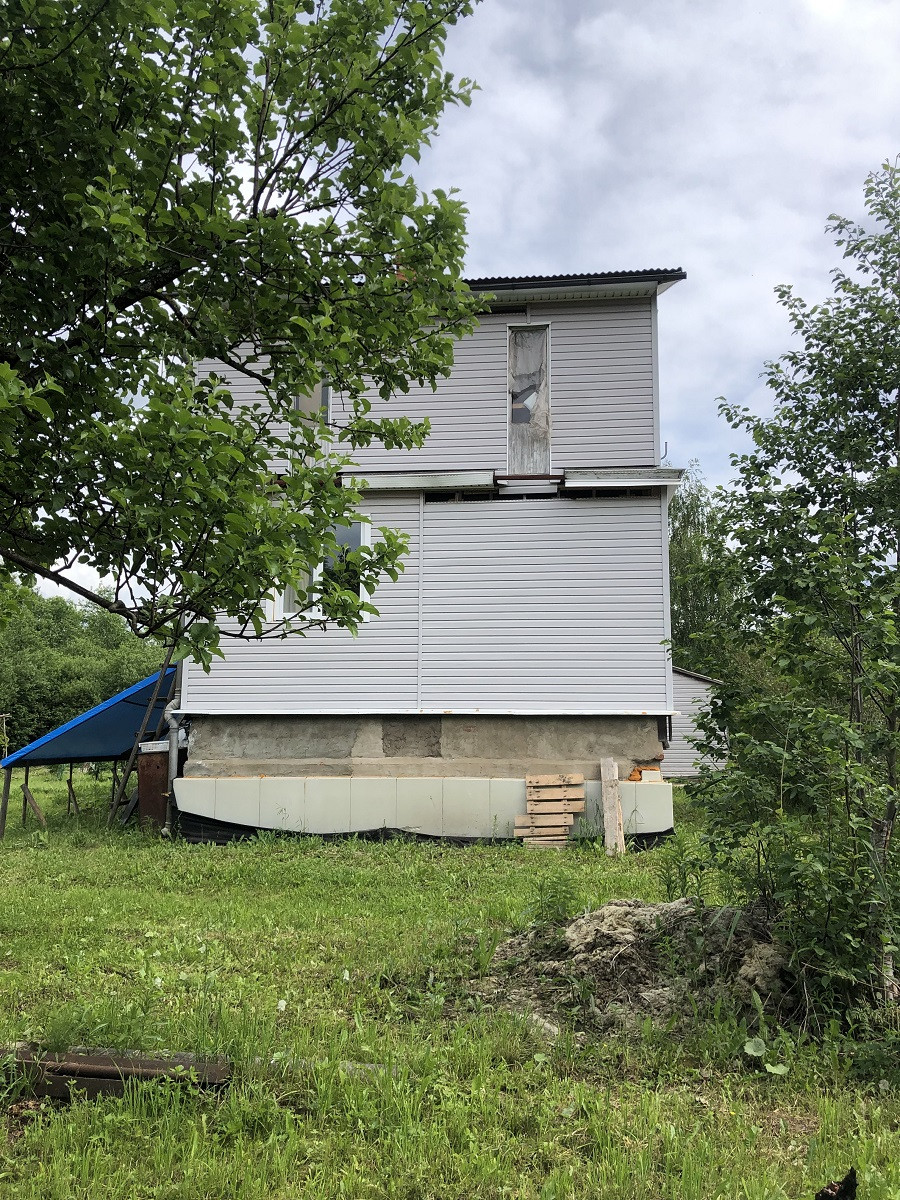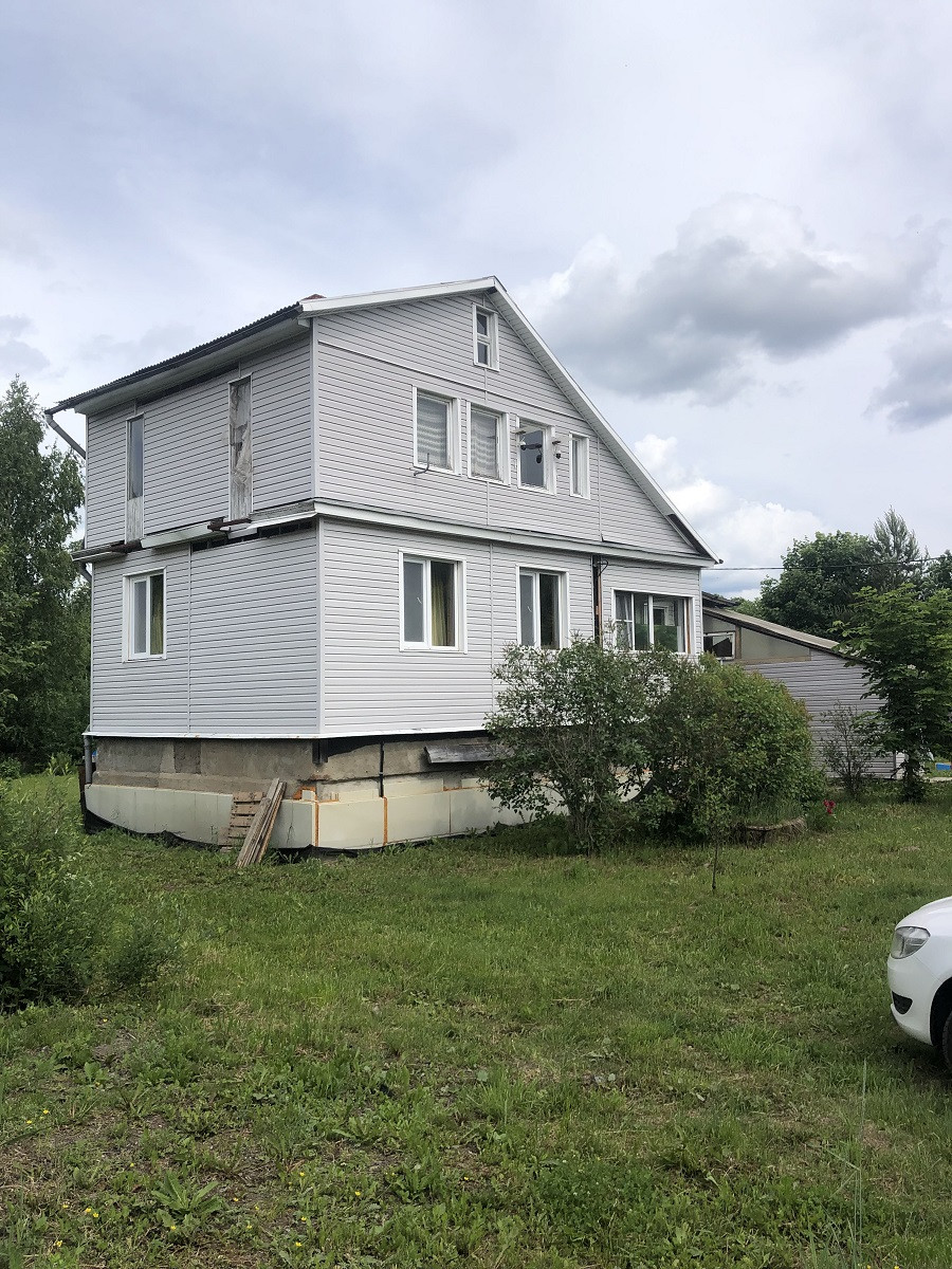 Дом бревенчатый на высоком ленточном фундаменте из бетонных блоков, обшитый сайдингом общей площадью 100 м кв. В цокольном этаже расположены подсобные помещения мастерская, место для котельной, погреб, и кладовка.