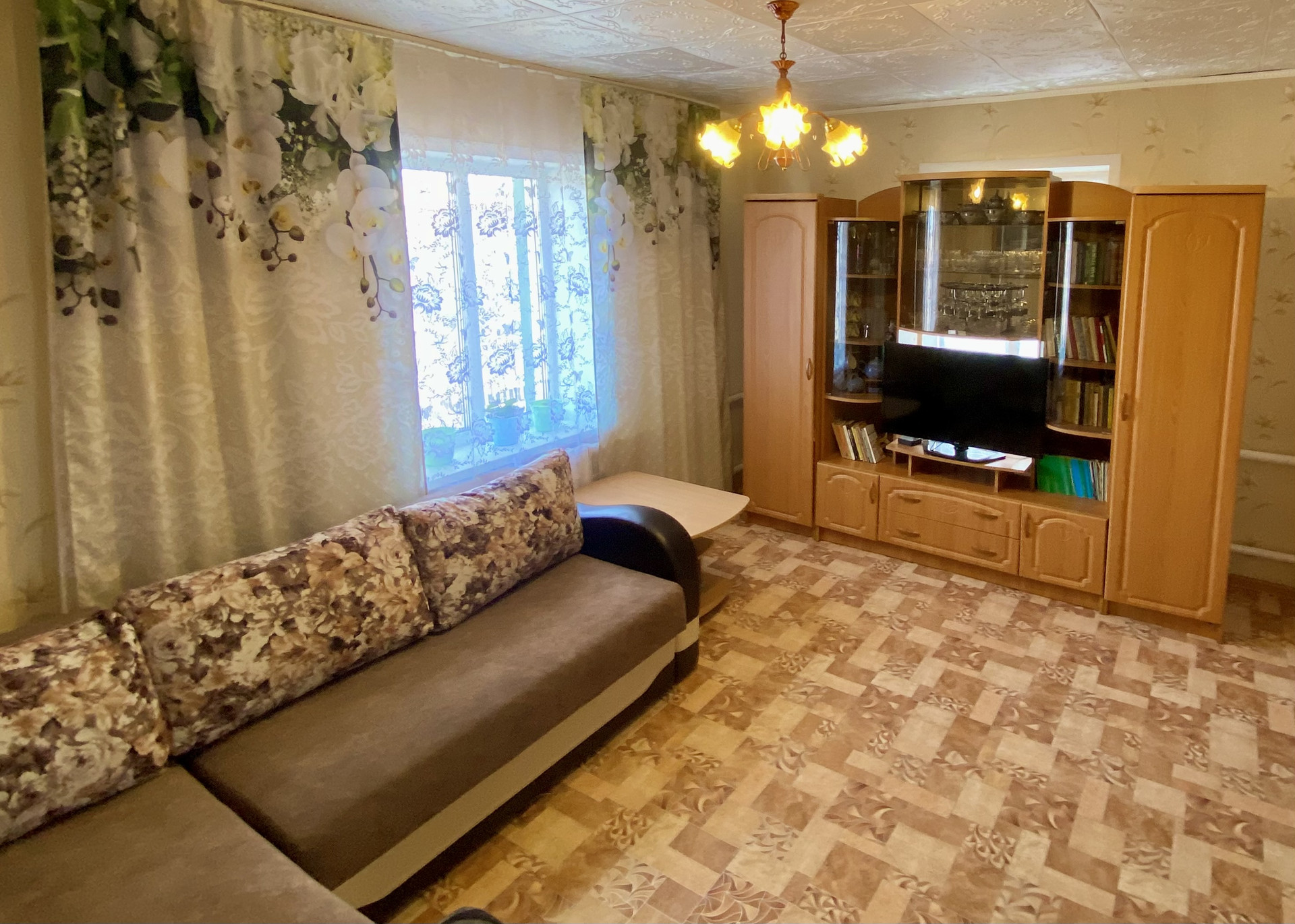 Дом кирпичный под сайдингом. Окна в комнатах и входная дверь пластик. Кровля - металлочерепица. Дом полностью мебелирован. Есть все необходимое для проживания (диван, кровати, стол, гостиная стенка, шкафы, комод, газплита 2 шт.,микроволновка, холодильник 2 шт.,водонагреватель 2 шт.инструмент - фортепиано)