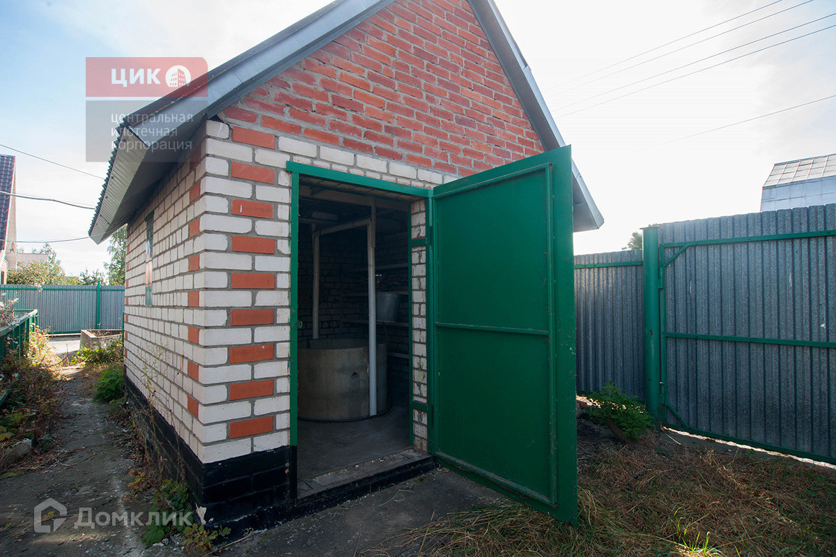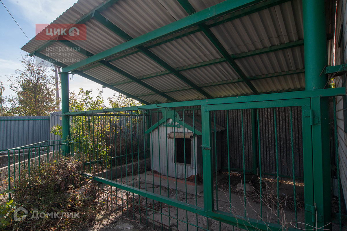 На участке располагаются: сарай, два гаража, складское помещение, летний душ , туалет, вольер с будкой для собаки, металлическое ограждение всего участка.