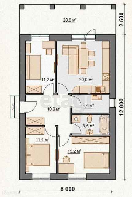 Общая площадь 95 м2