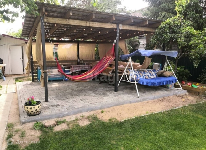 На участке большая уютная беседка, площадью 30 кв.м., душ с подогревом, мангальная зона, дорожки выложены плиткой. Зона отдыха: навес, вымощен плиткой, установлены качели.