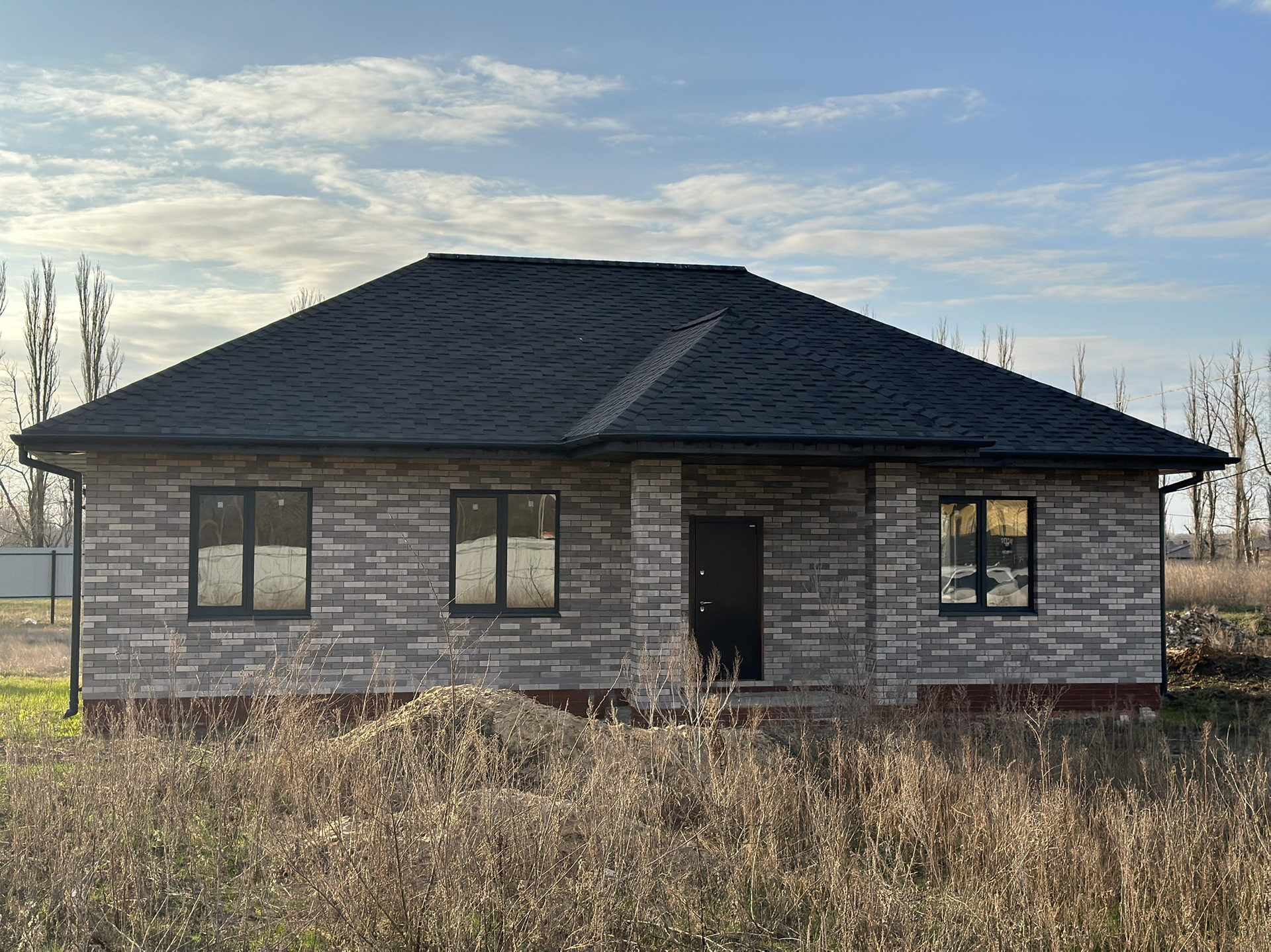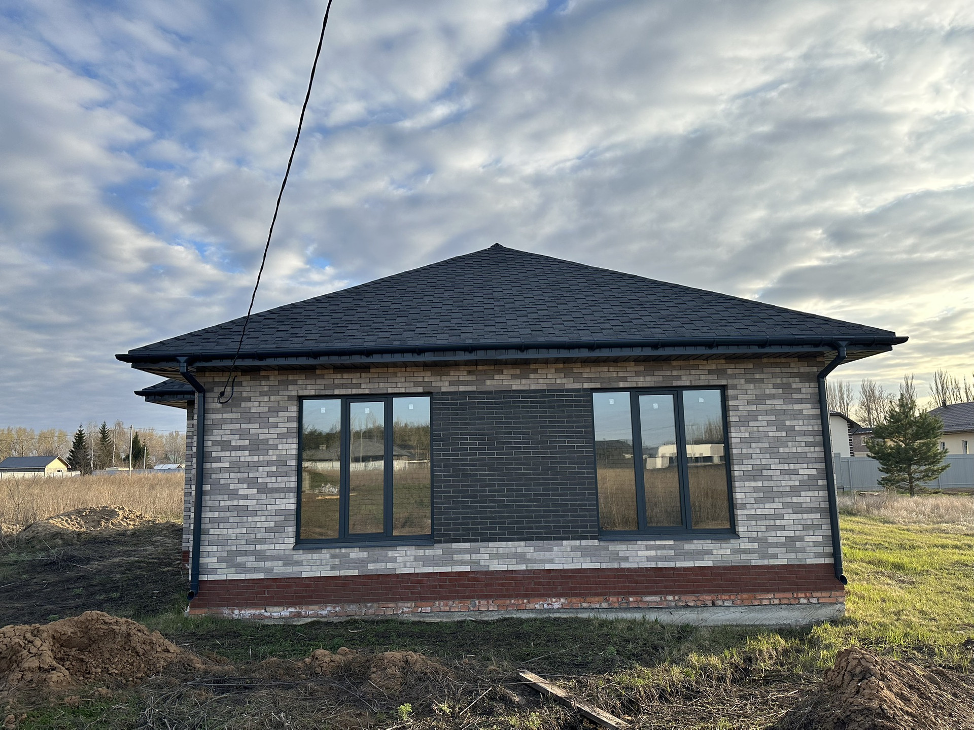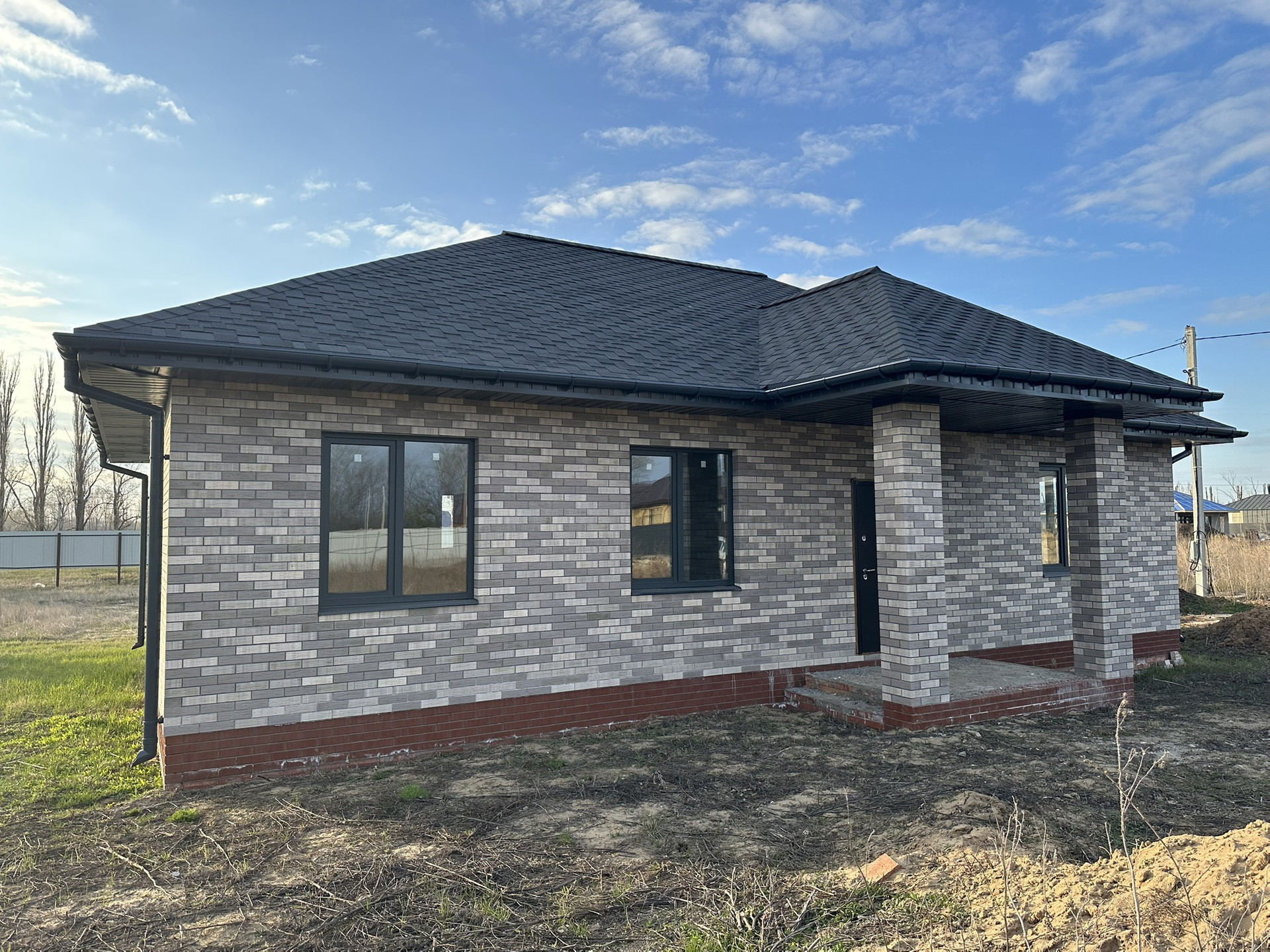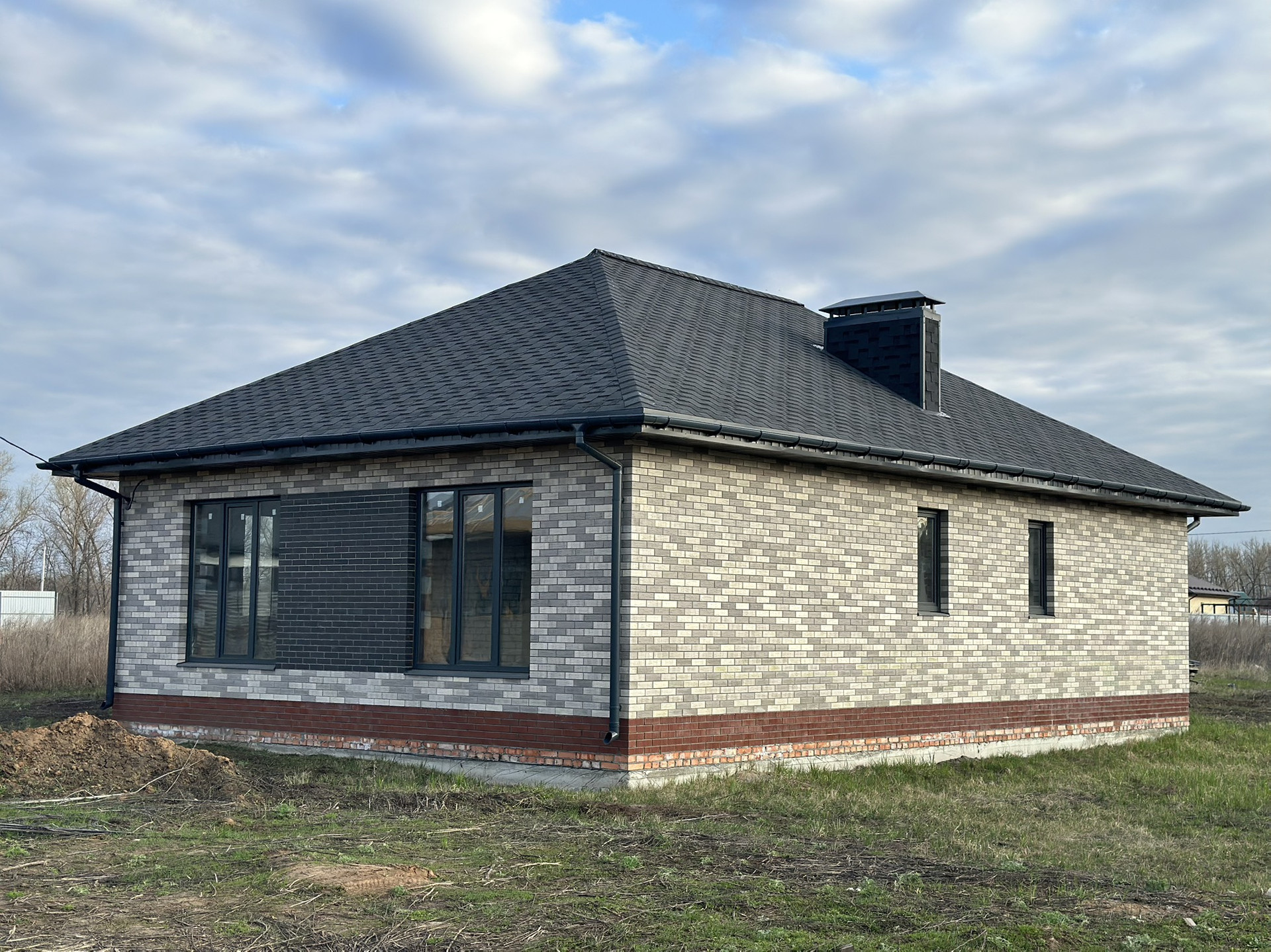 Кровля: из гибкой черепицы графитового цвета.