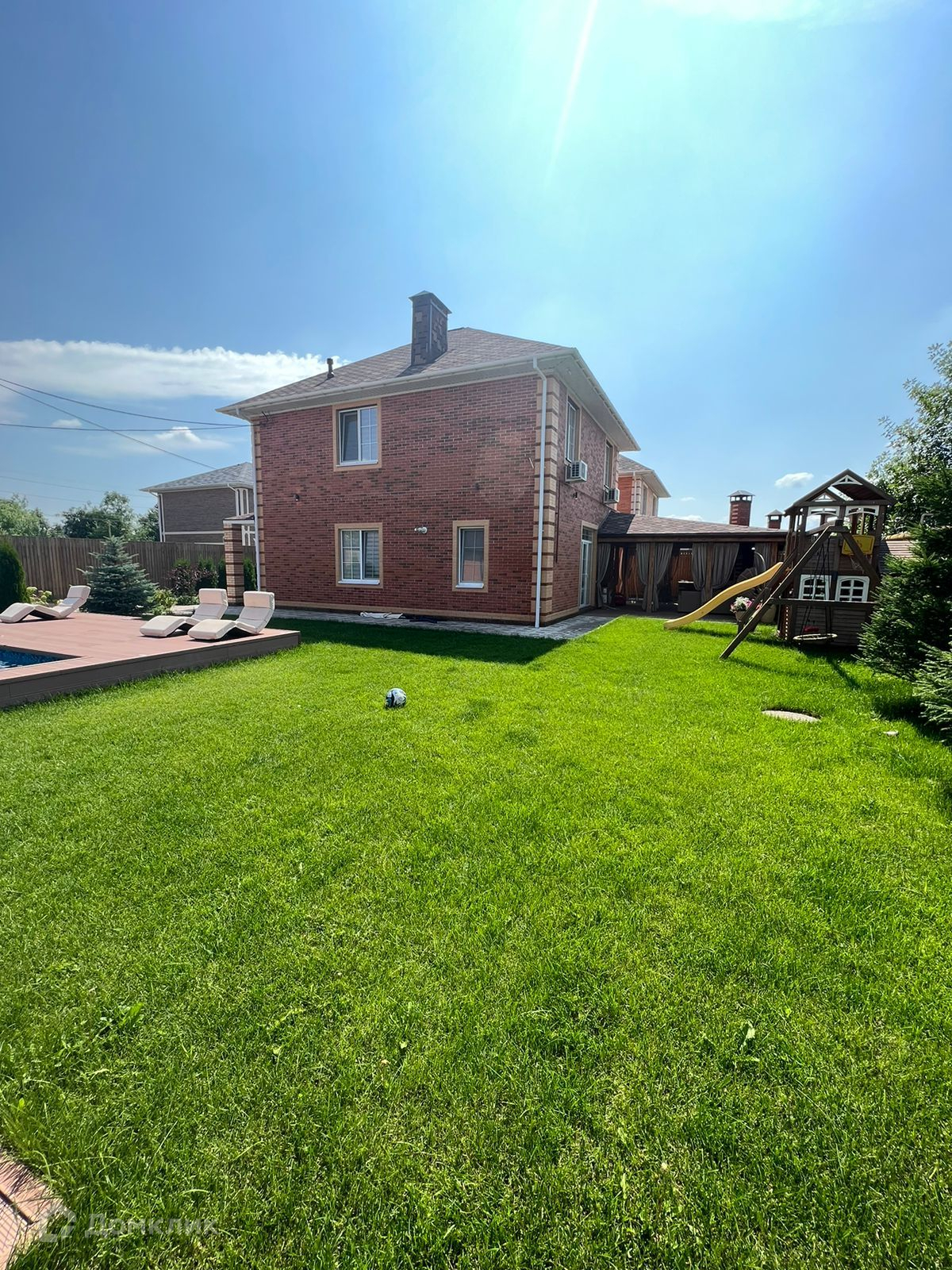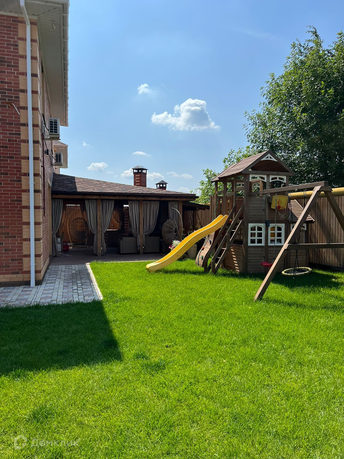 На территории также есть терраса для отдыха на свежем воздухе, обустроенное место для барбекю (мангальная зона, печь), подогреваемый бассейн, детская площадка, летний душ.