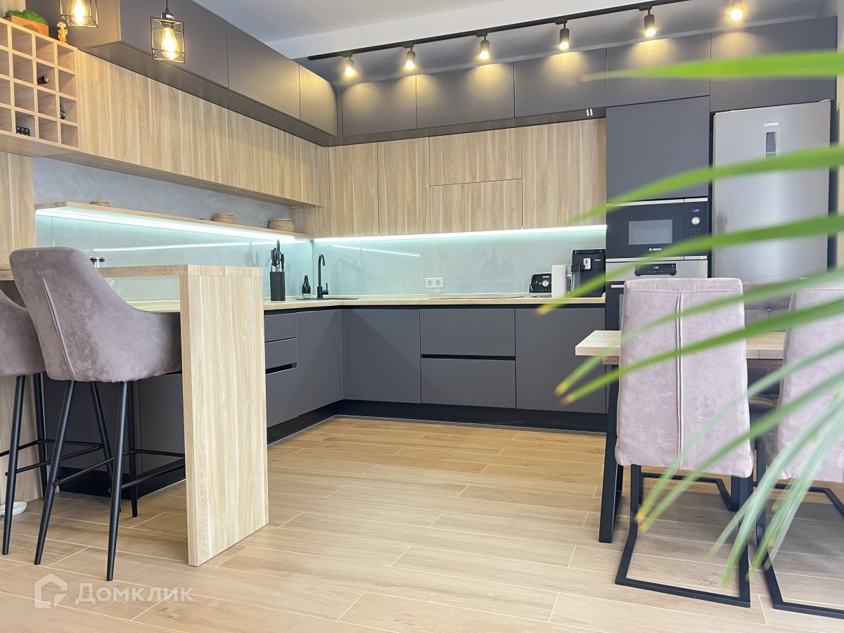 На кухне индукционная варочная панель Gorenje, духовой шкаф Bosch, микроволновая печь Bosch, холодильник Gorenje, посудомоечная машина Bosch, измельчитель.
