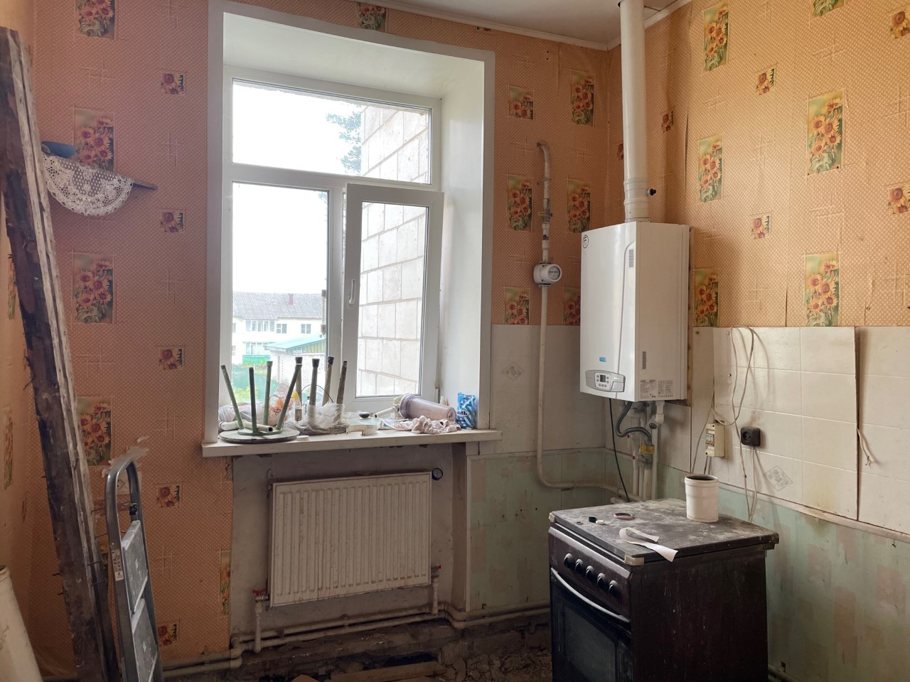 Продам крупногабаритную квартиру, требует ремонта - разобраны полы, АОГВ, свой рабочий газовый котел на отопление и горячую воду, ванная и санузел в хорошем состоянии, окна ПВХ, изолированные комнаты, металлическая входная дверь, чистый большой подъезд, бетонные перекрытия, огороженная территория вокруг дома, своя парковка, рядом остановка транспорта, в поселке школа и садик, сельская администрация, магазины, почта. Один взрослый собственник, вся сумма в договоре.