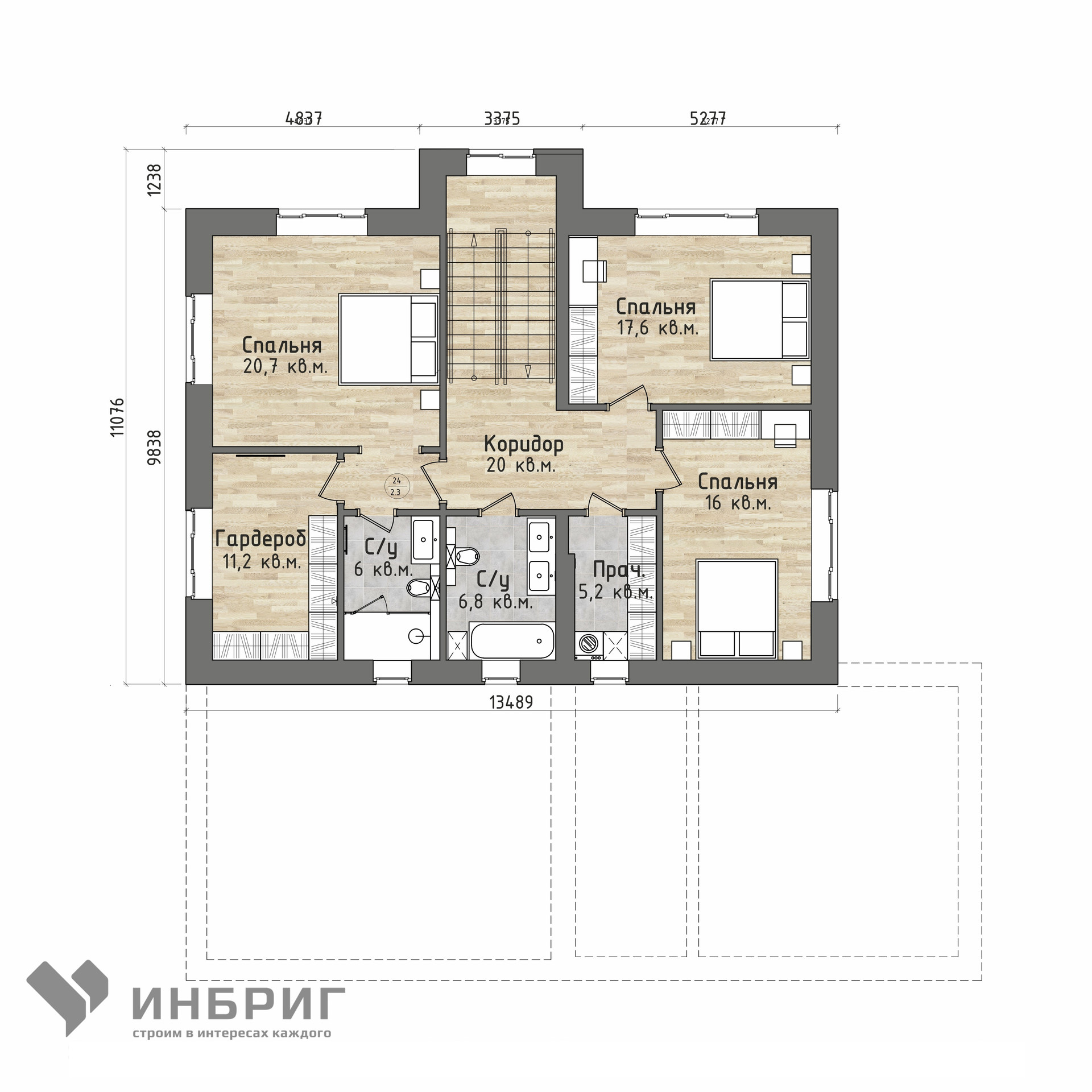 На 2 этаже располагаются 2 уютные спальные комнаты, прачечная, ванная комната и большая мастер-спальня со своим гардеробом и ванной комнатой.