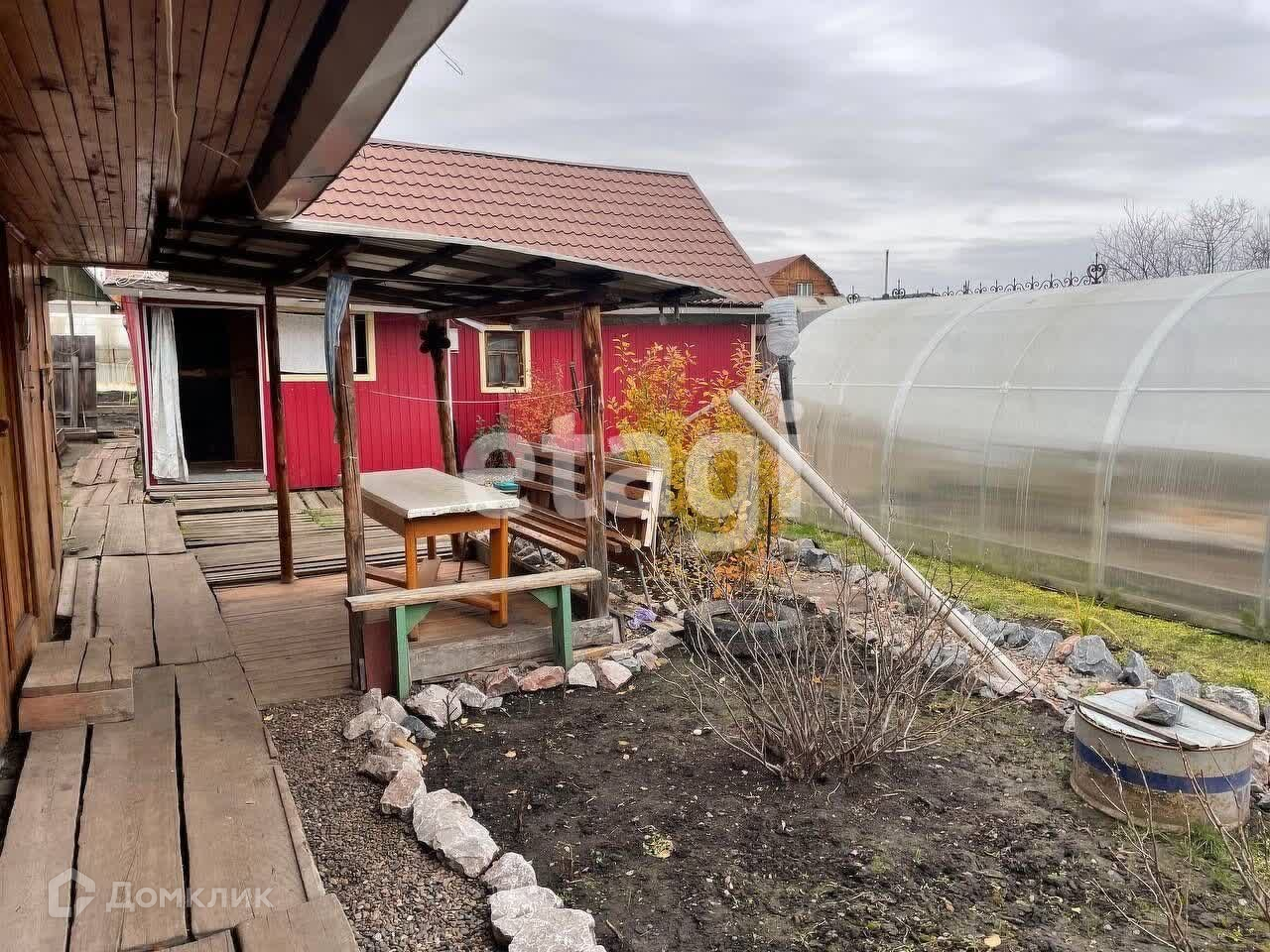 На участке есть хорошая баня с предбанником, летняя кухня, контейнер для хранения, погреб, большая теплица и отапливаемый гостевой домик.