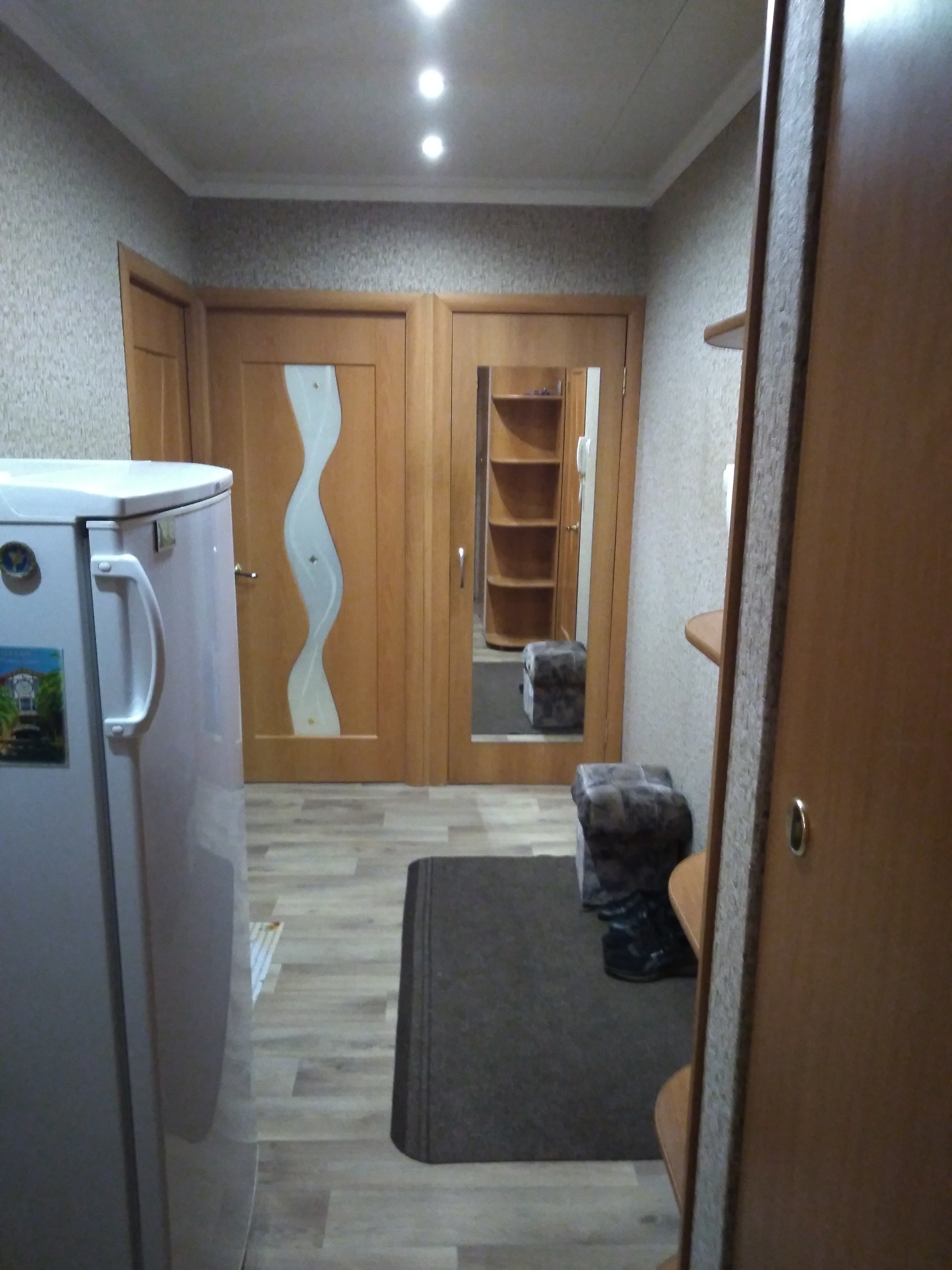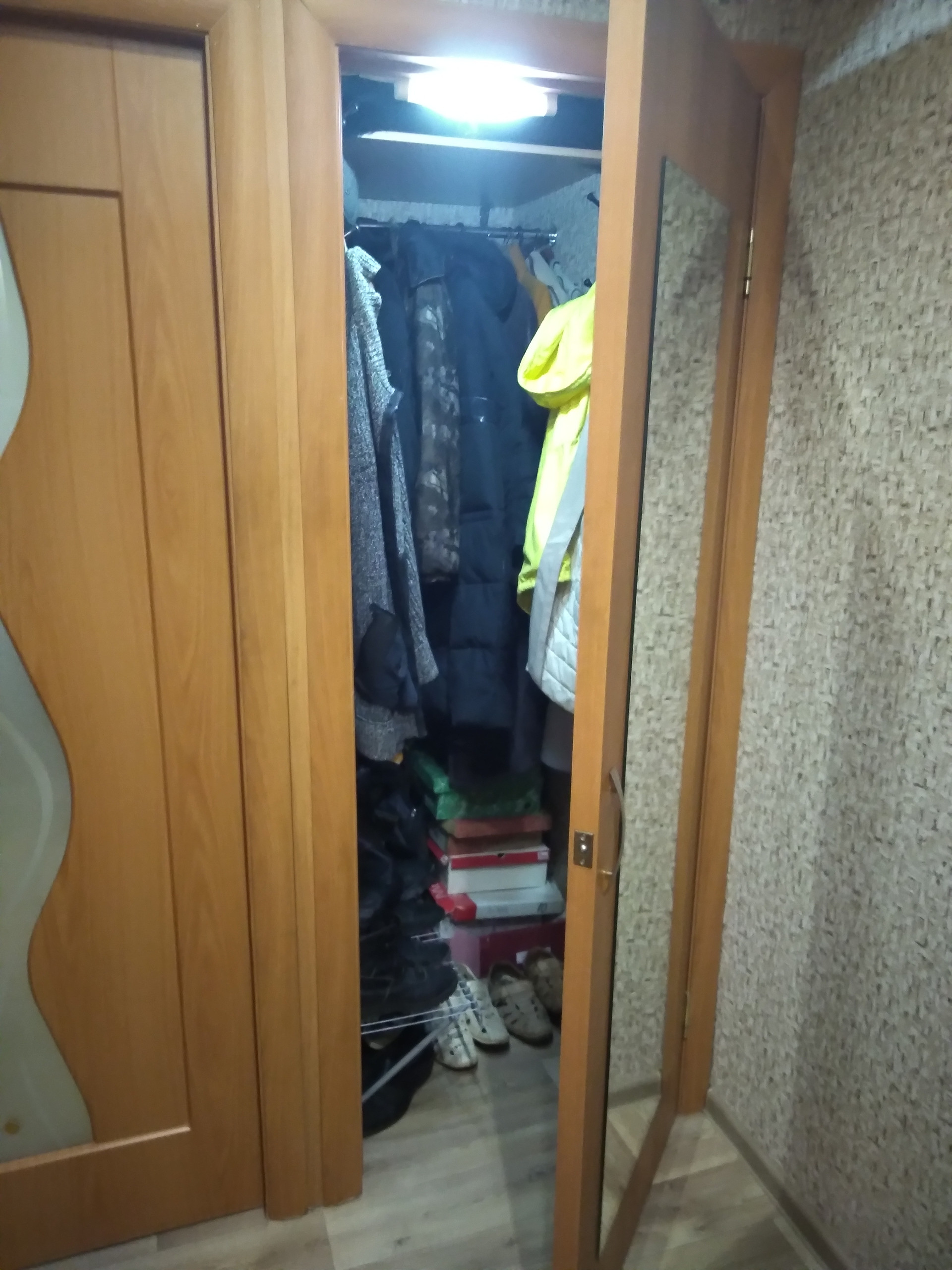 В коридоре встроенные гардеробная и хозяйственный шкаф.