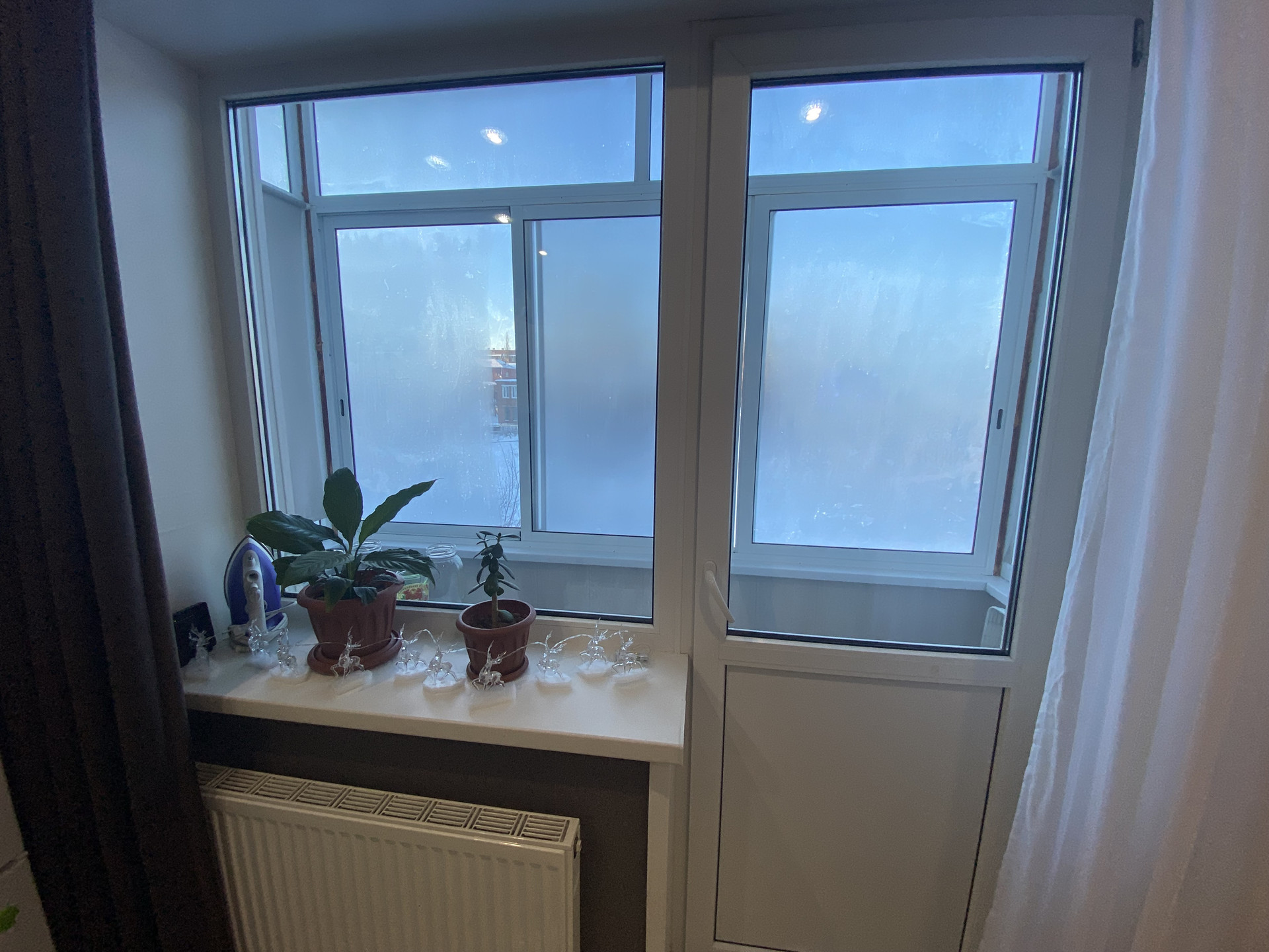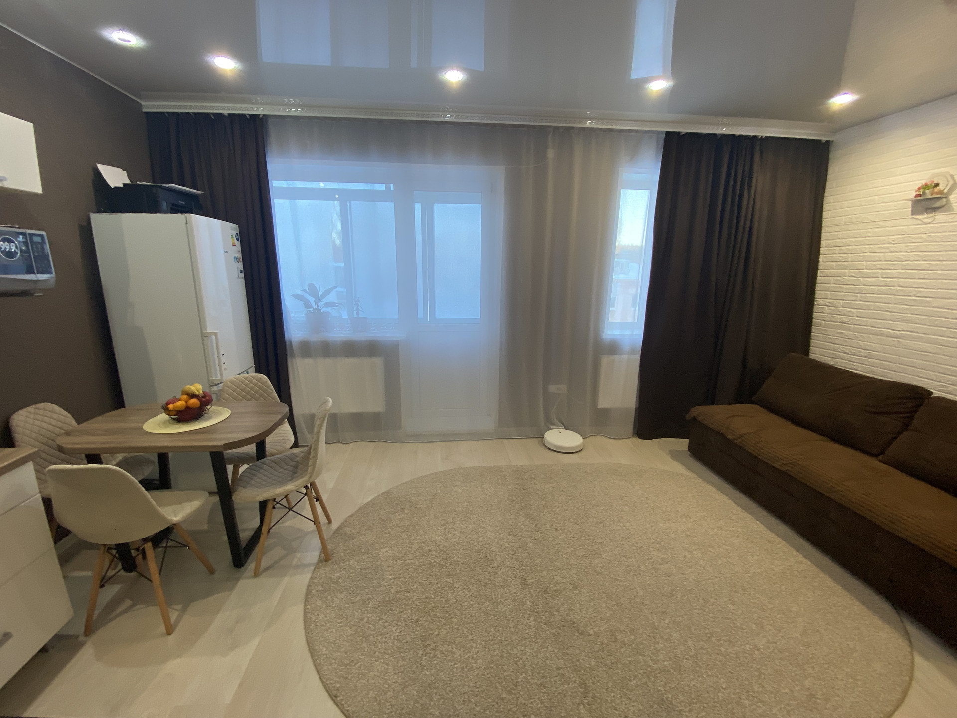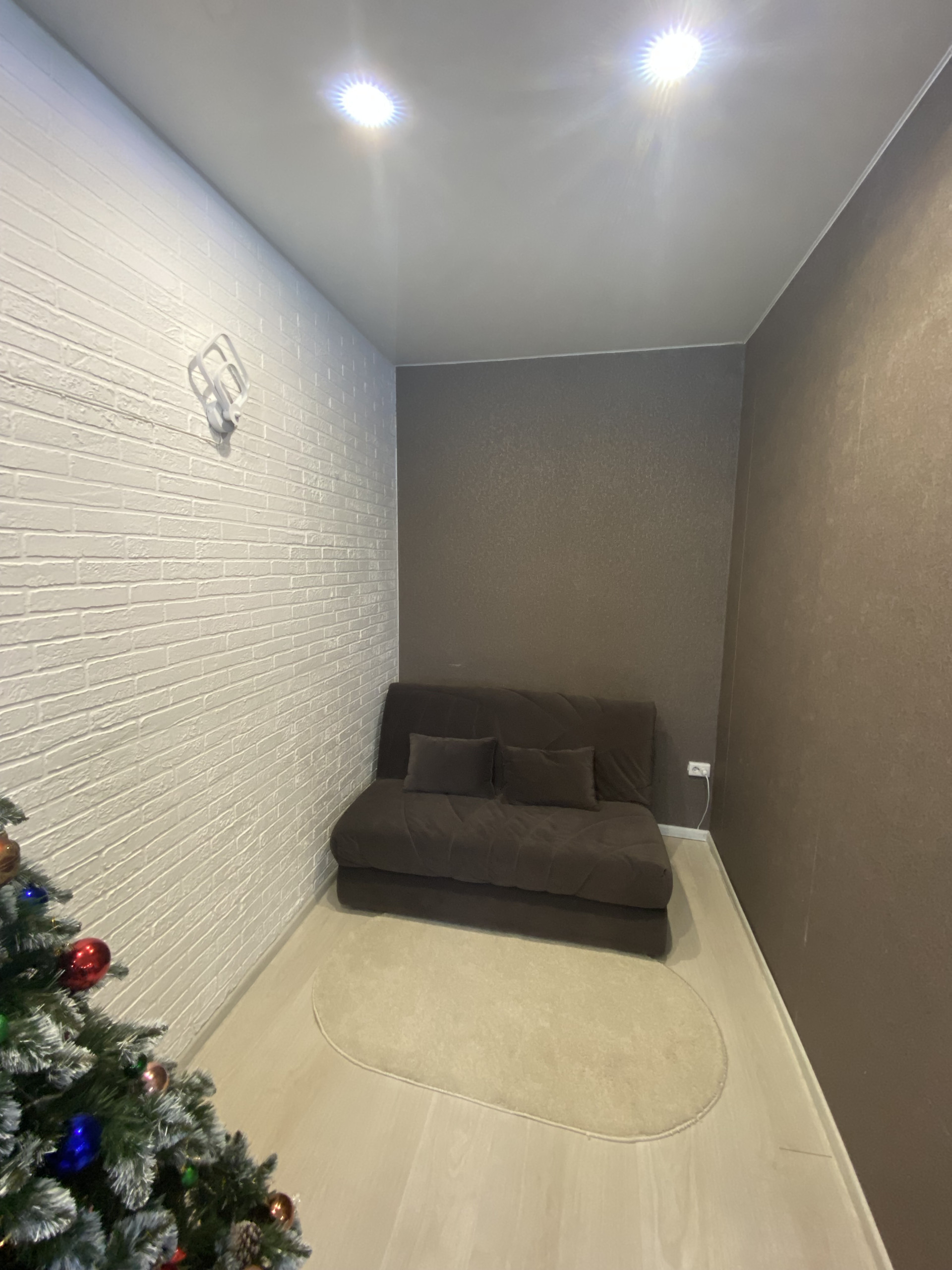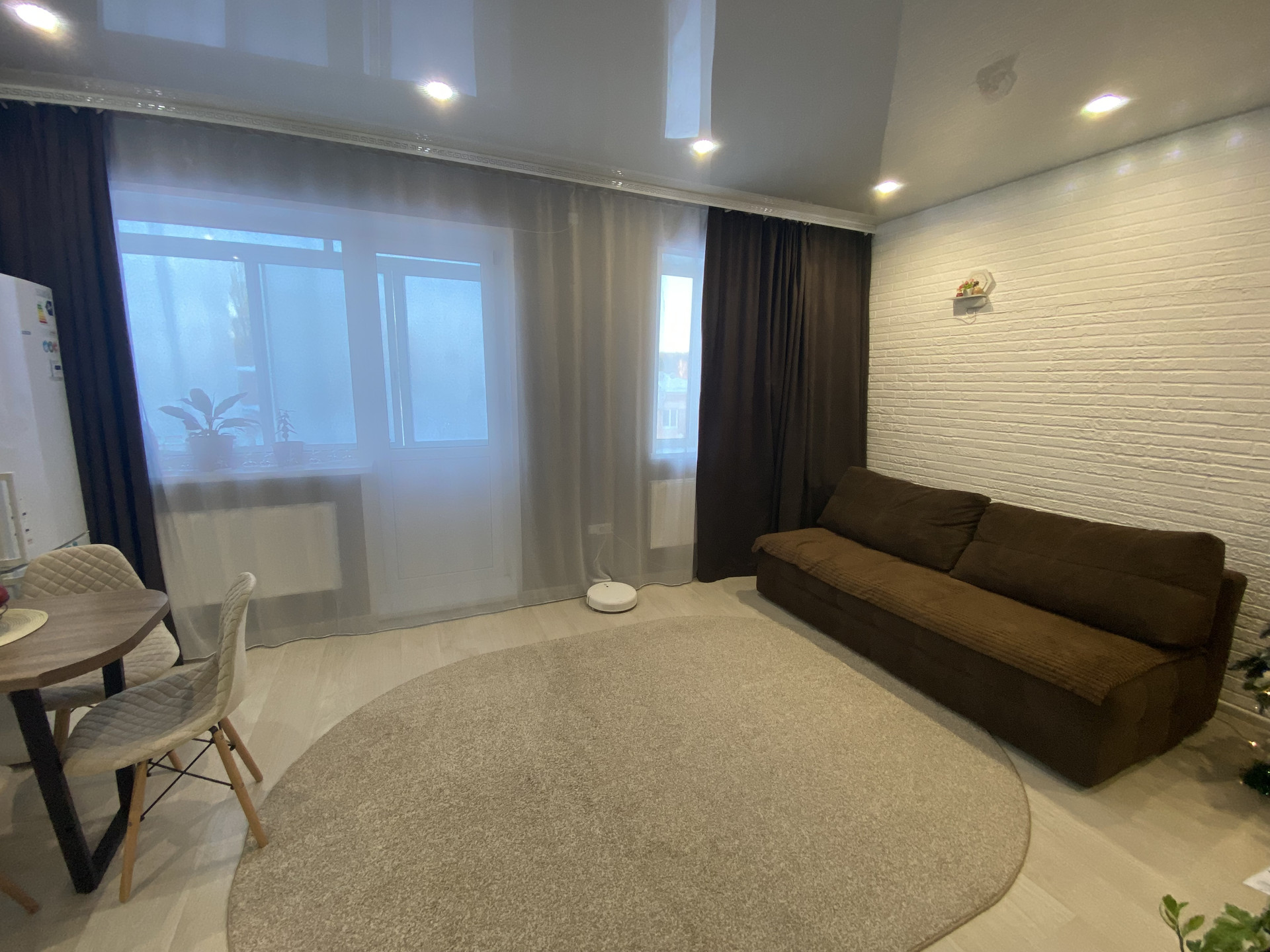 - Окна пластиковые, балкон застеклён пластиковыми окнами-купе, на полу в комнате лежит ламинат, потолки натяжные.