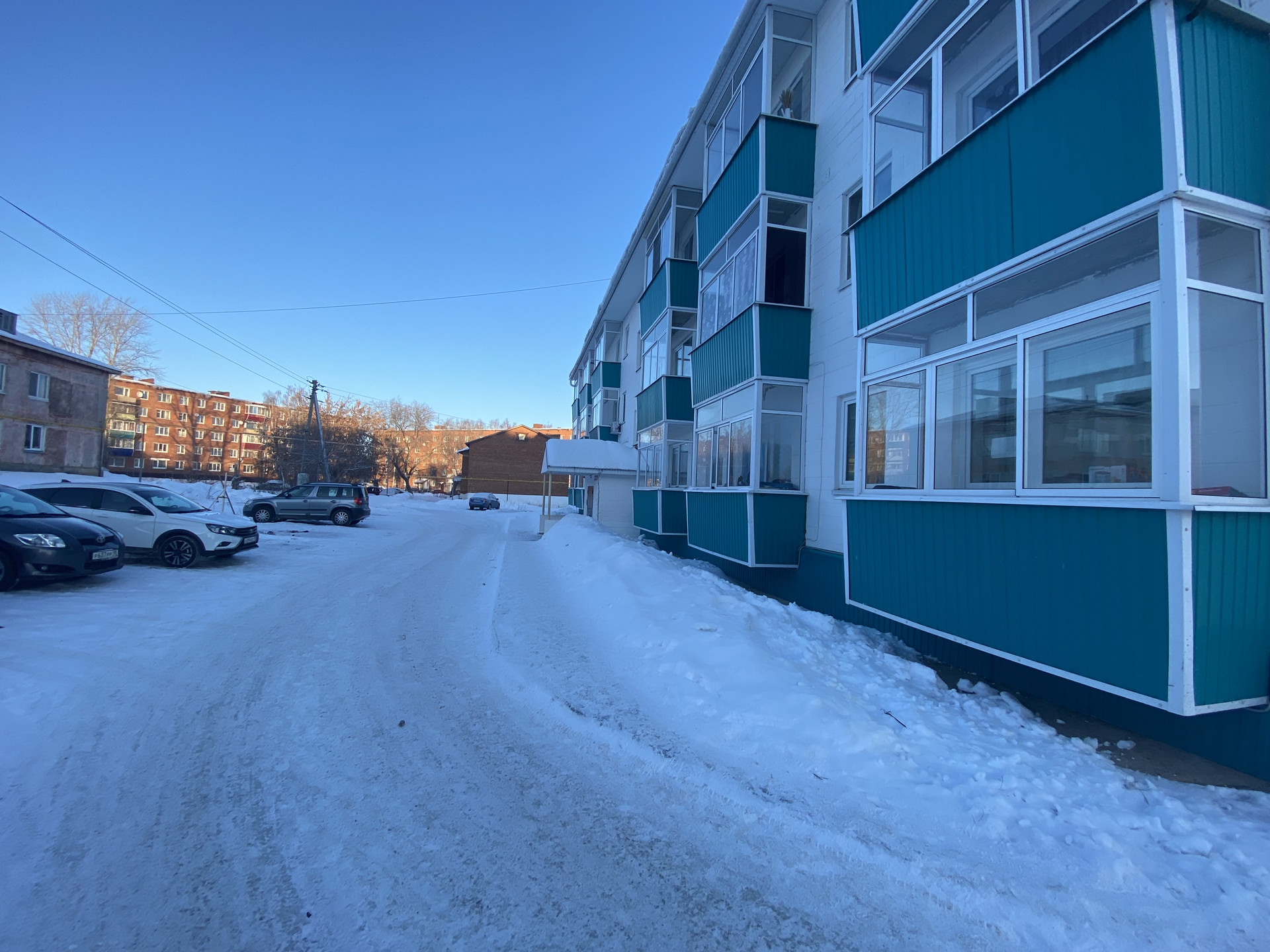 - Во дворе автомобильная парковка.