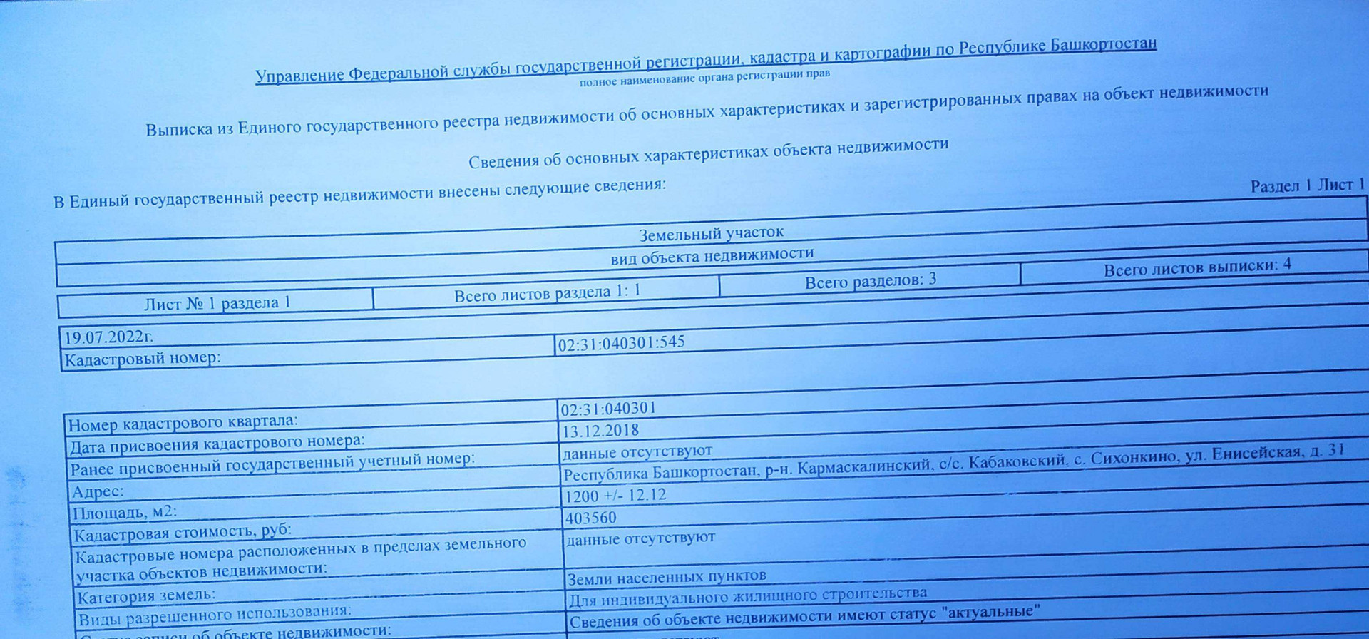 Стоимость недвижимости:
