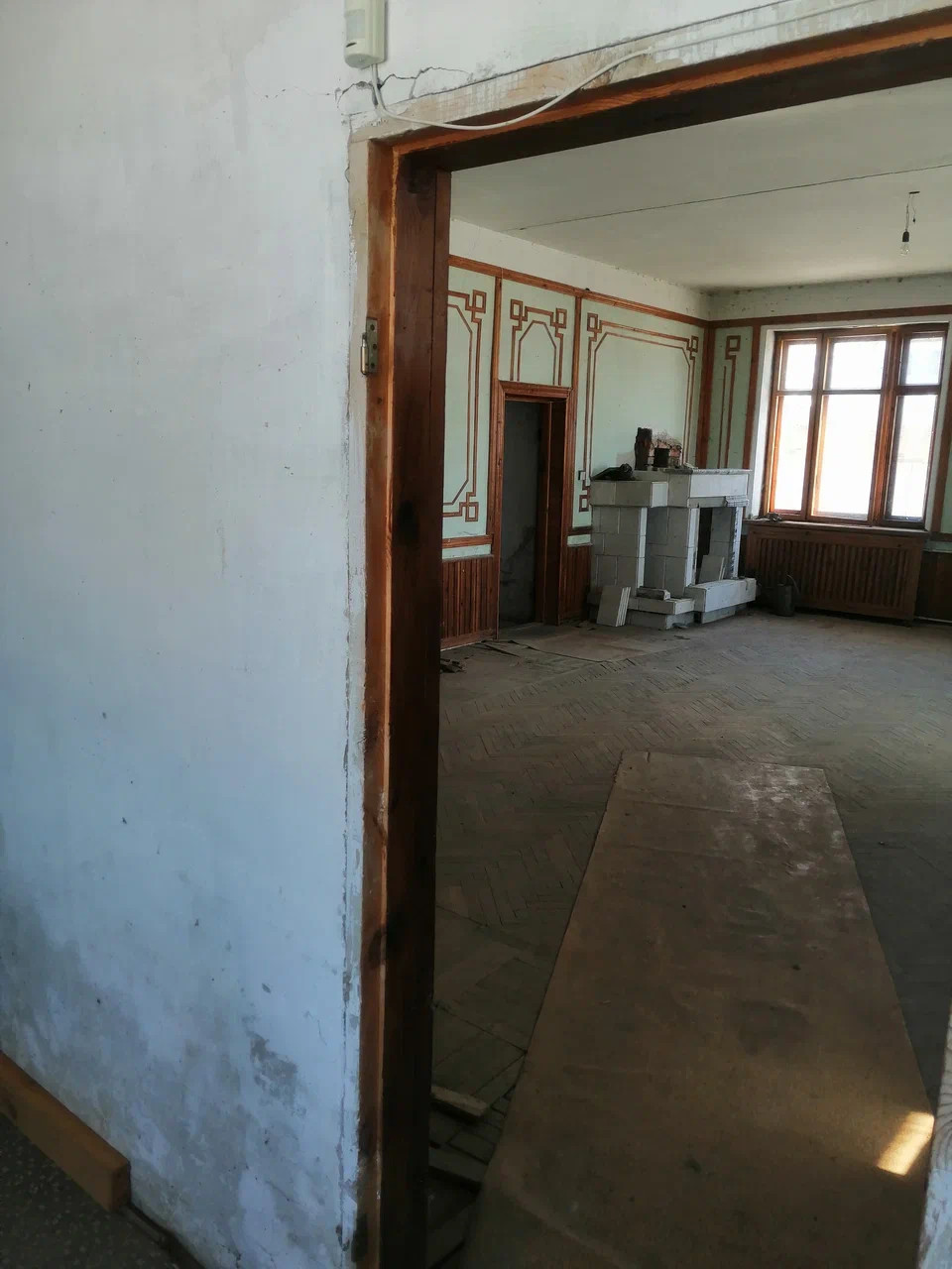 Первый этаж - просторная гостиная с камином, кухня, спальня, санузел.