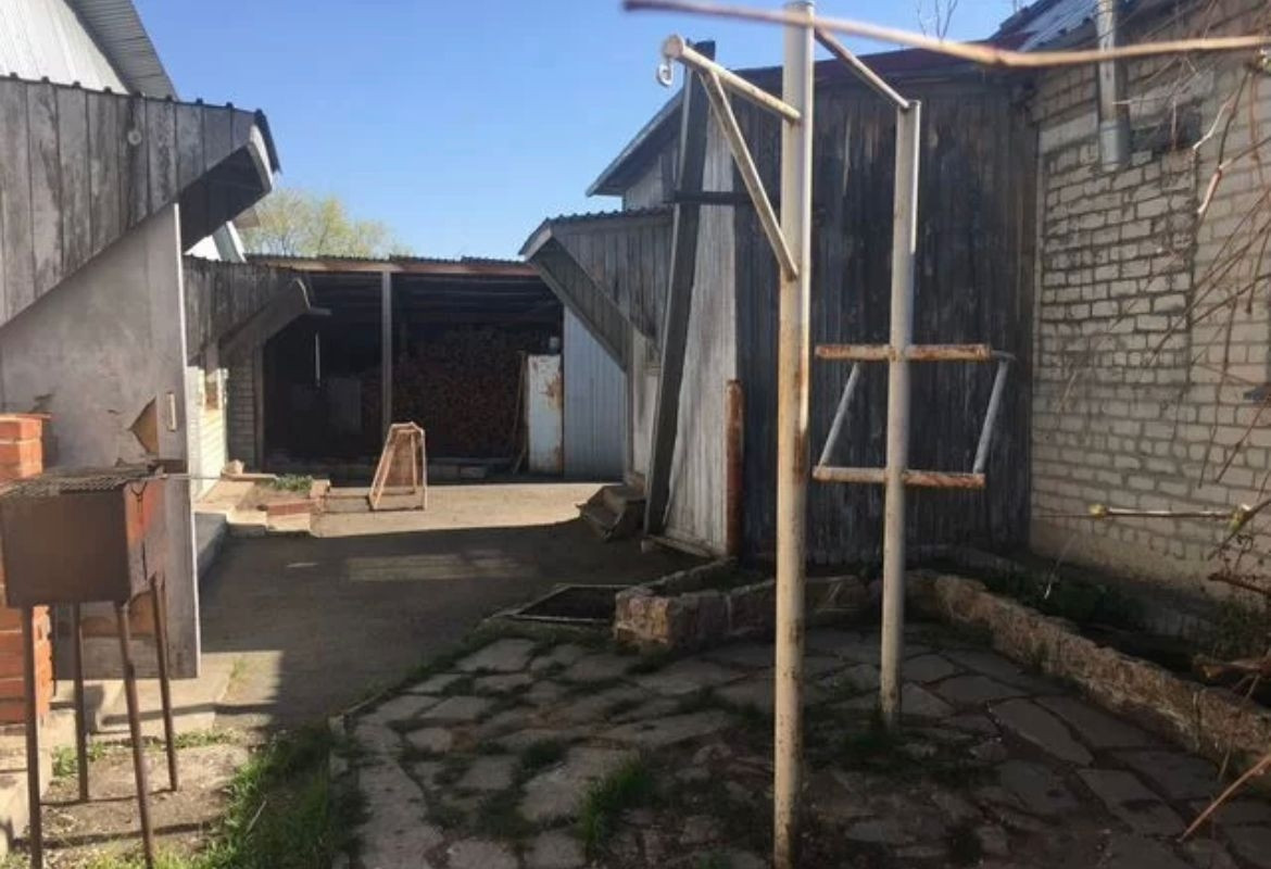 Во дворе асфальт, дровник, вольер для собаки, курятник ( утки и куры живут круглый год) , турник для занятия спортом.