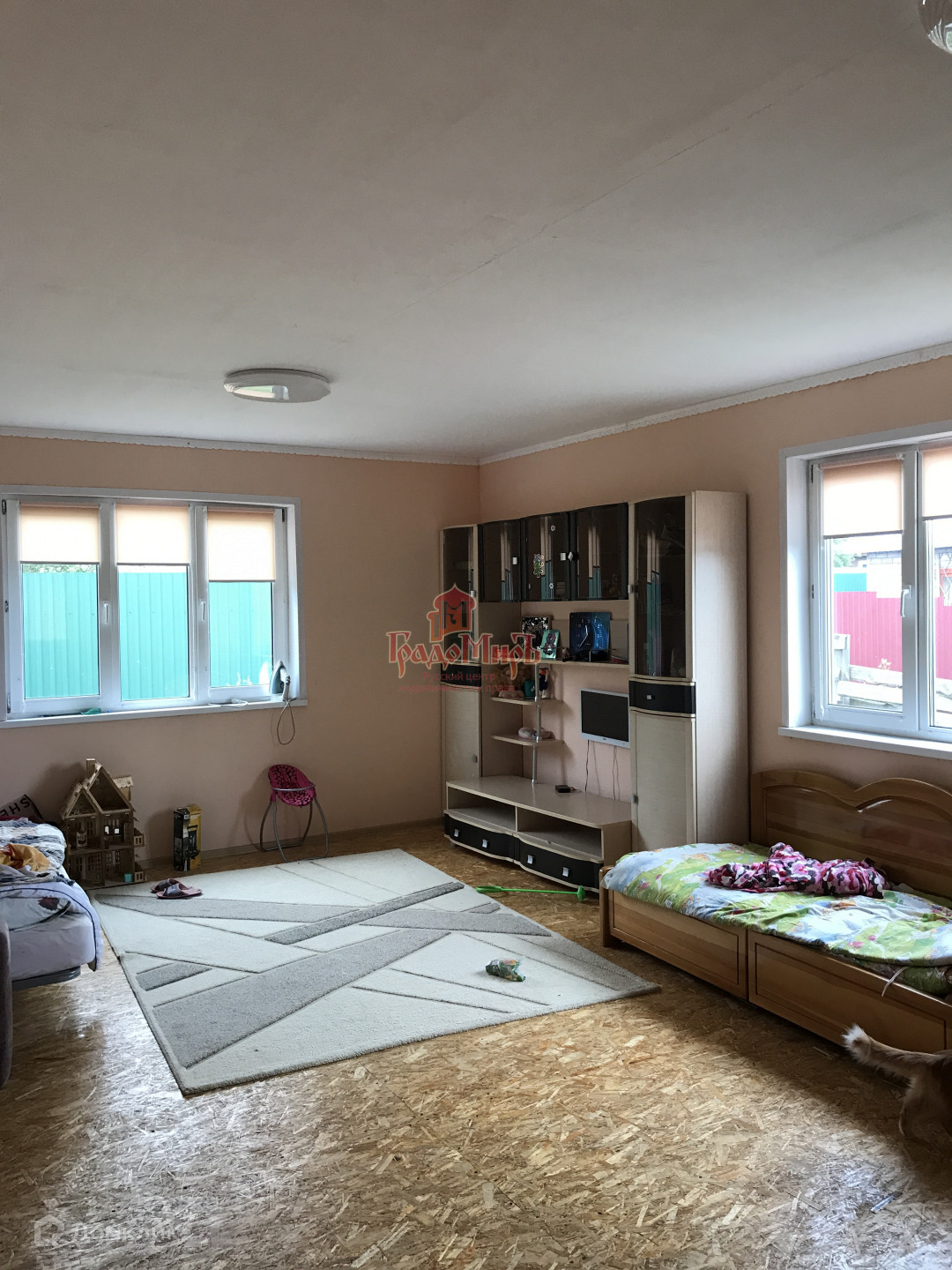 Второй этаж требует доделок, пол покрыт черновой доской. Большие панорамные пластиковые окна. Во всем доме установлены окна ПВХ с тройным стеклопакетом.