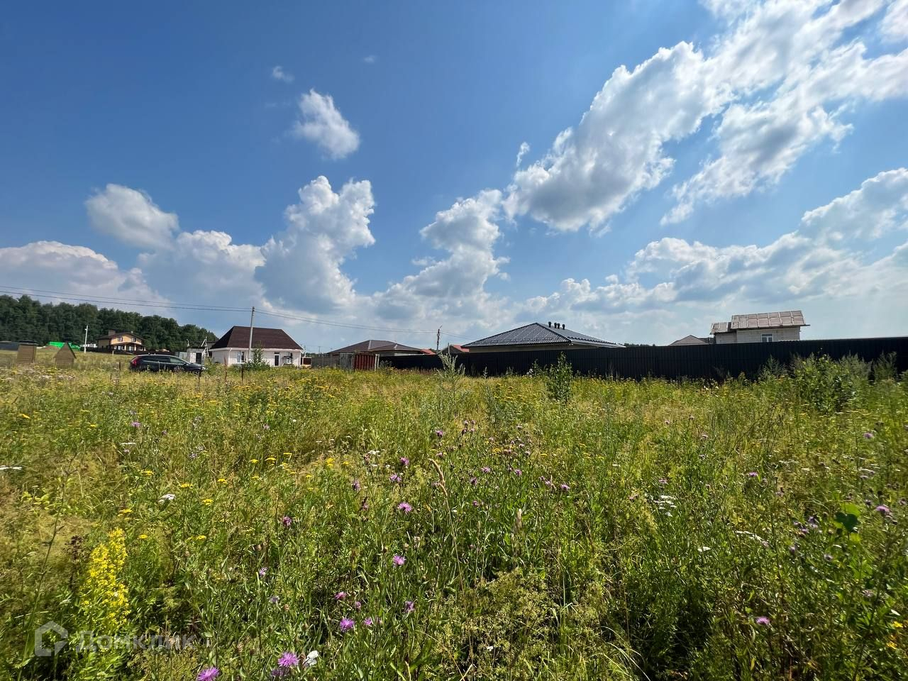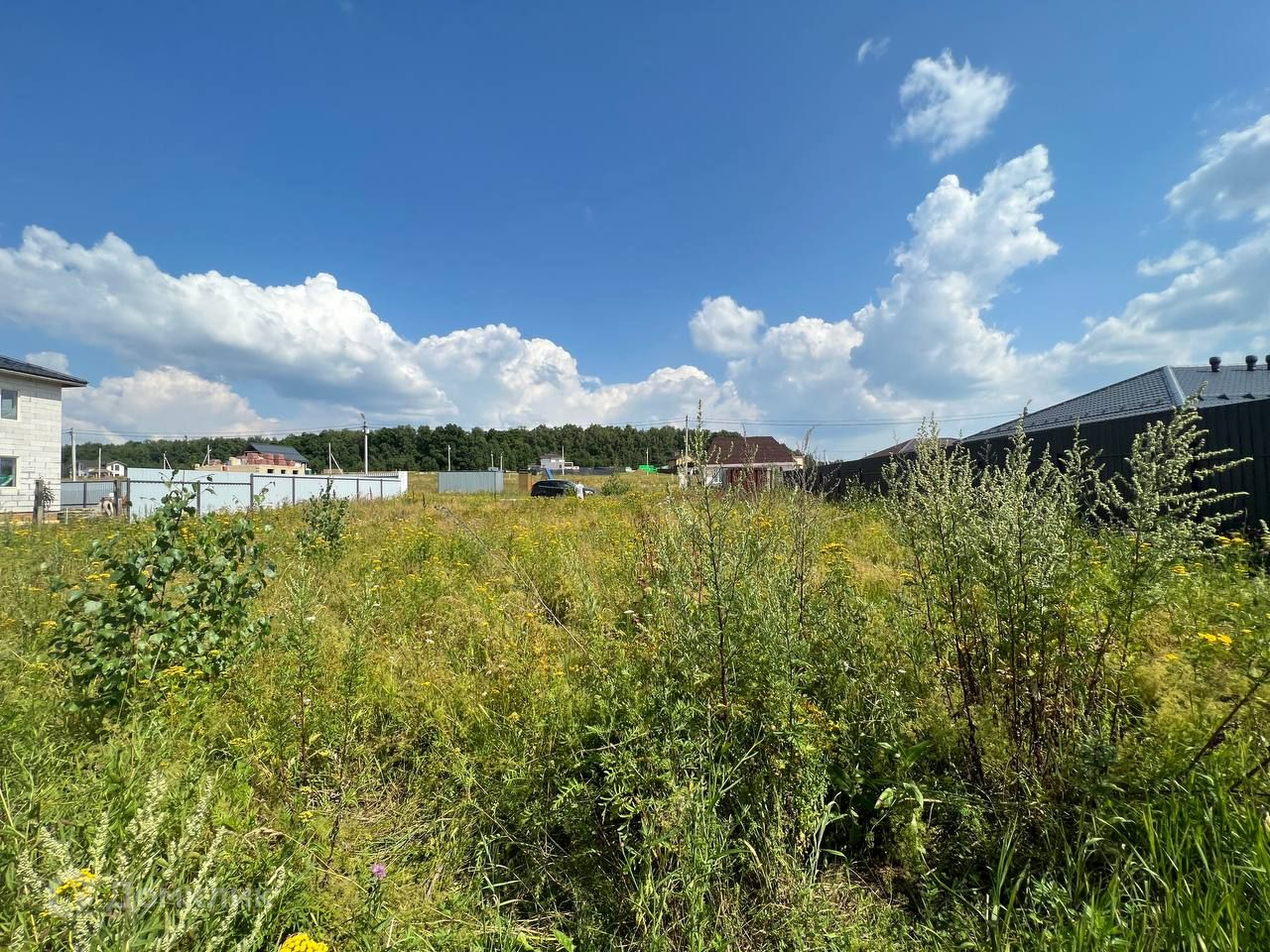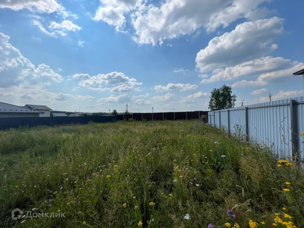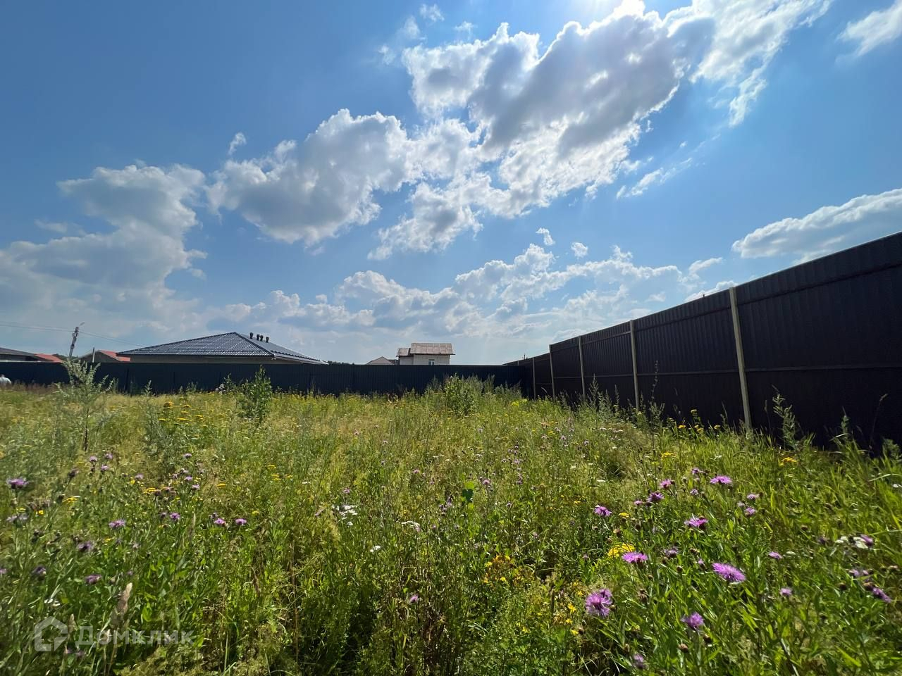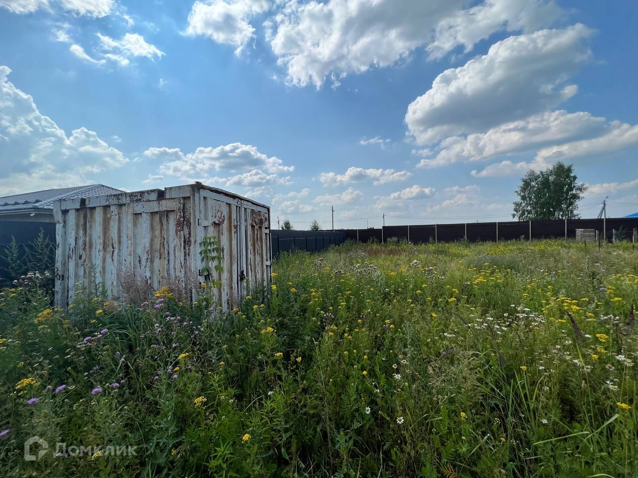 Участок ровный, прямоугольной формы. По нескольким сторонам участок обнесён забором.