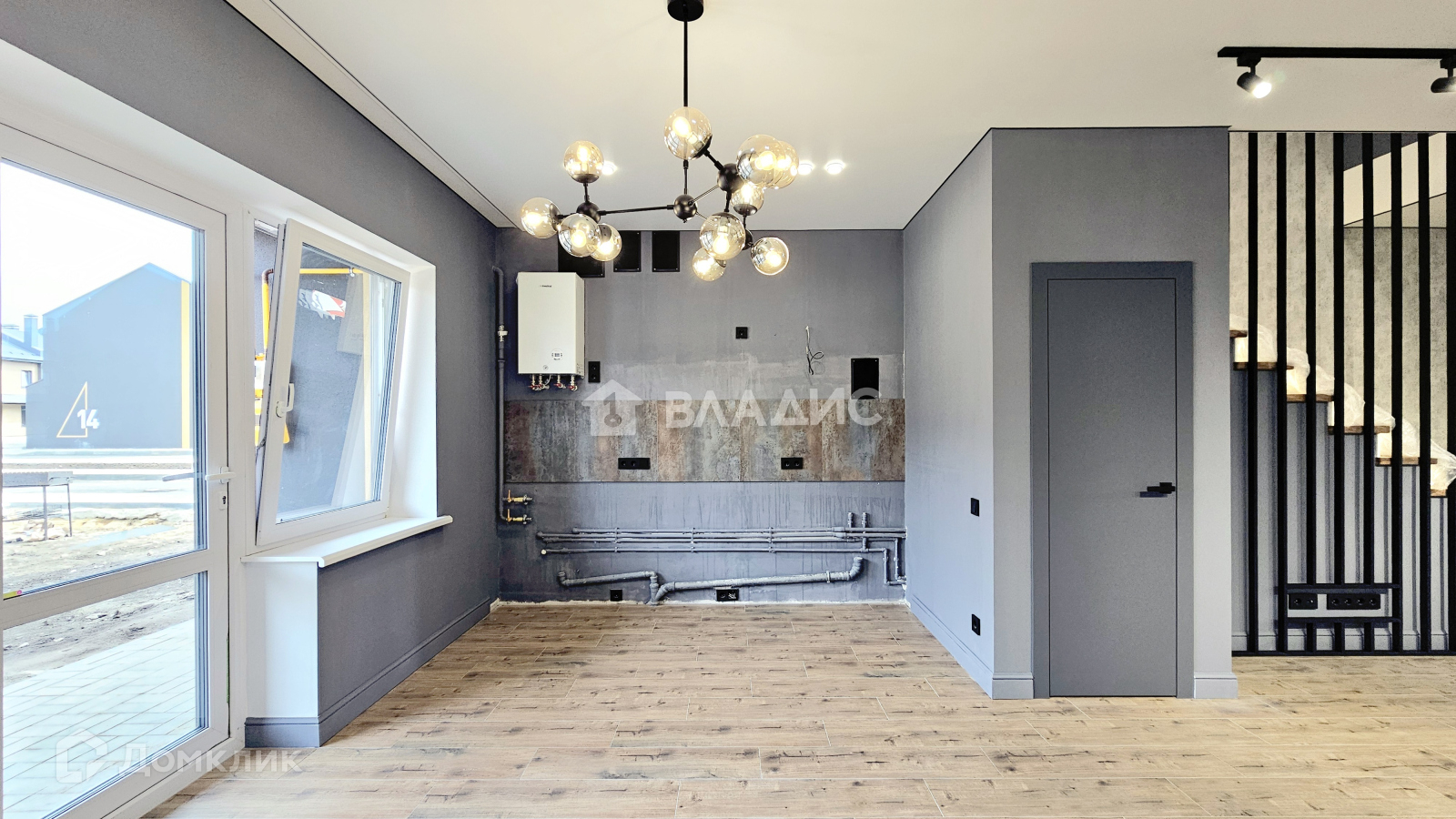 На первом этаже расположена просторная кухня-гостинная с выходом на собственный участок, холл и санузел. На втором этаже совмещенный санузел, три спальни, две спальни с выходом на лоджию. Стены выравнены по маякам гипсовой штукатуркой, на полу полусухая стяжка, установлен двухконтурный газовый котёл. Первый этаж отапливается за счёт тёплых водяных полов и радиаторов, второй за счёт радиаторов и теплого пола в санузле. Толщина внешних стен и перегородок между соседями 400 мм., межэтажные и чердачные перекрытия из ж/б плит. Входная дверь металлическая с терморазрывом и теплым контуром. Все коммуникации: вода, газ и электричество подведены и подключены, центральная канализация, дренажные системы водоотведения, центральная ливнёвая система. У каждого таунхауса парковочные места на две машины.