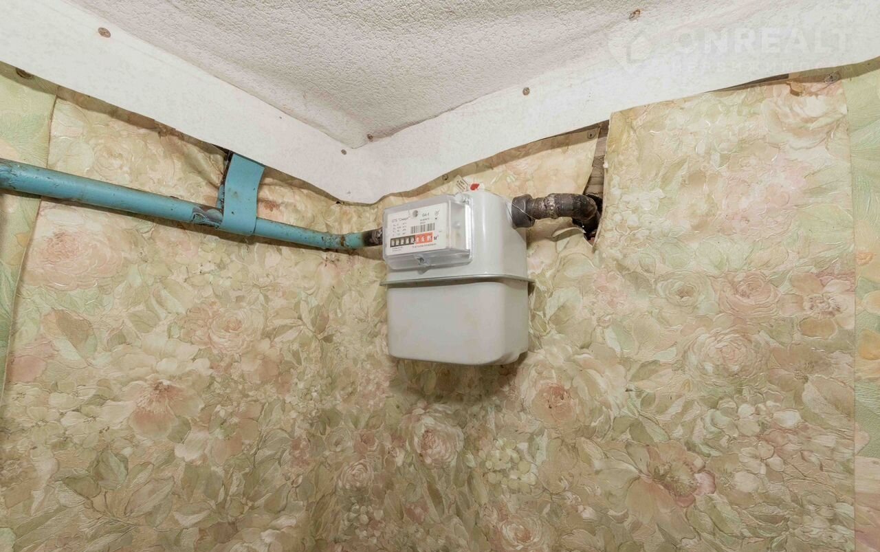 Электричество, центральное водоснабжение, газовое водяное отопление (работает), счетчик на газ, газ плита, галанка.
