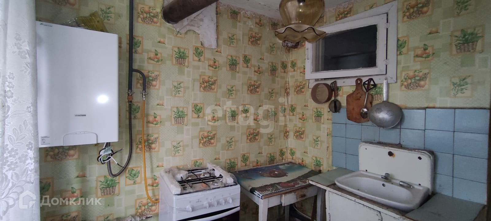 Газ заведён в квартиру. Газовый котёл висит.Требуется ремонт.
