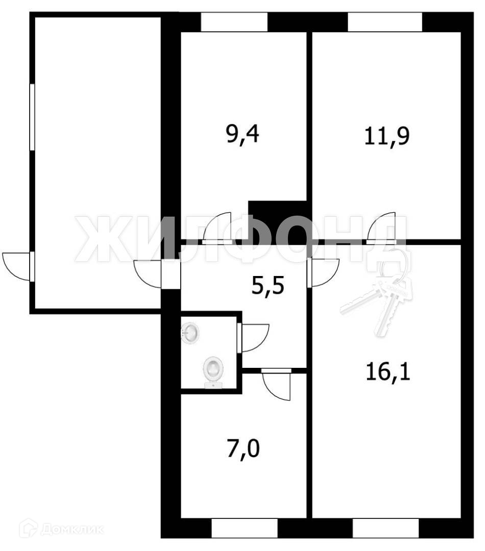Общая площадь 50.9 м2