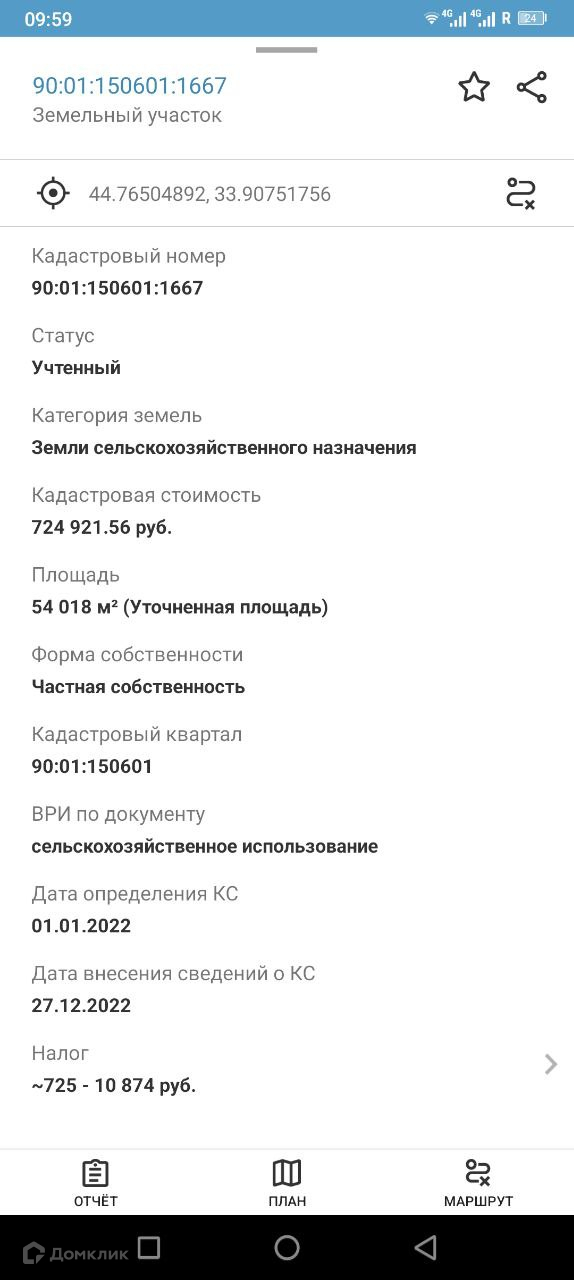 Площадь участка 540 сот.
