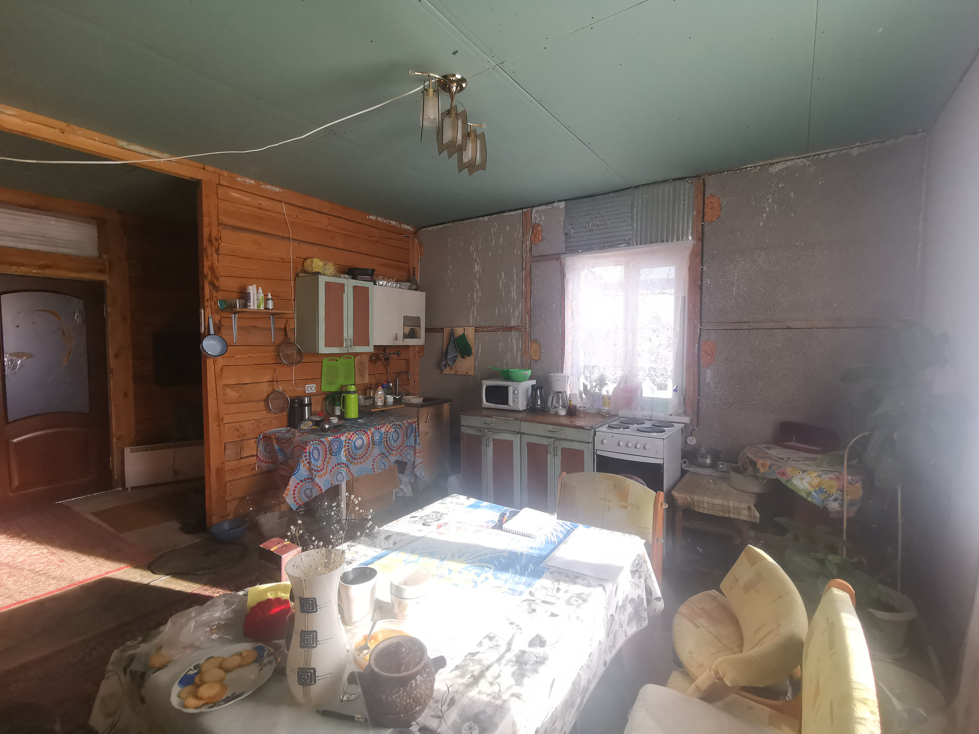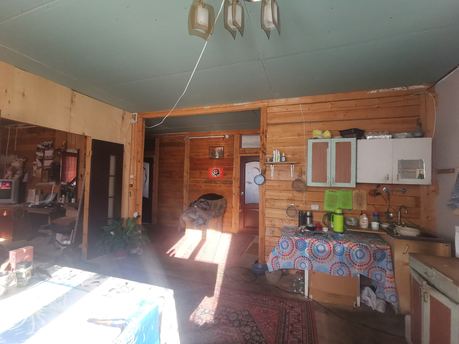 Частично сделан ремонт в 2-ух комнатах, уложен ламинат, натянуты потолки с точечным освещением, с/у совмещен. Имеется возможность оборудовать 2 этаж, за счёт чего у вас увеличится жилая площадь дома. Кровля утеплена, имеется место для установки лестницы.