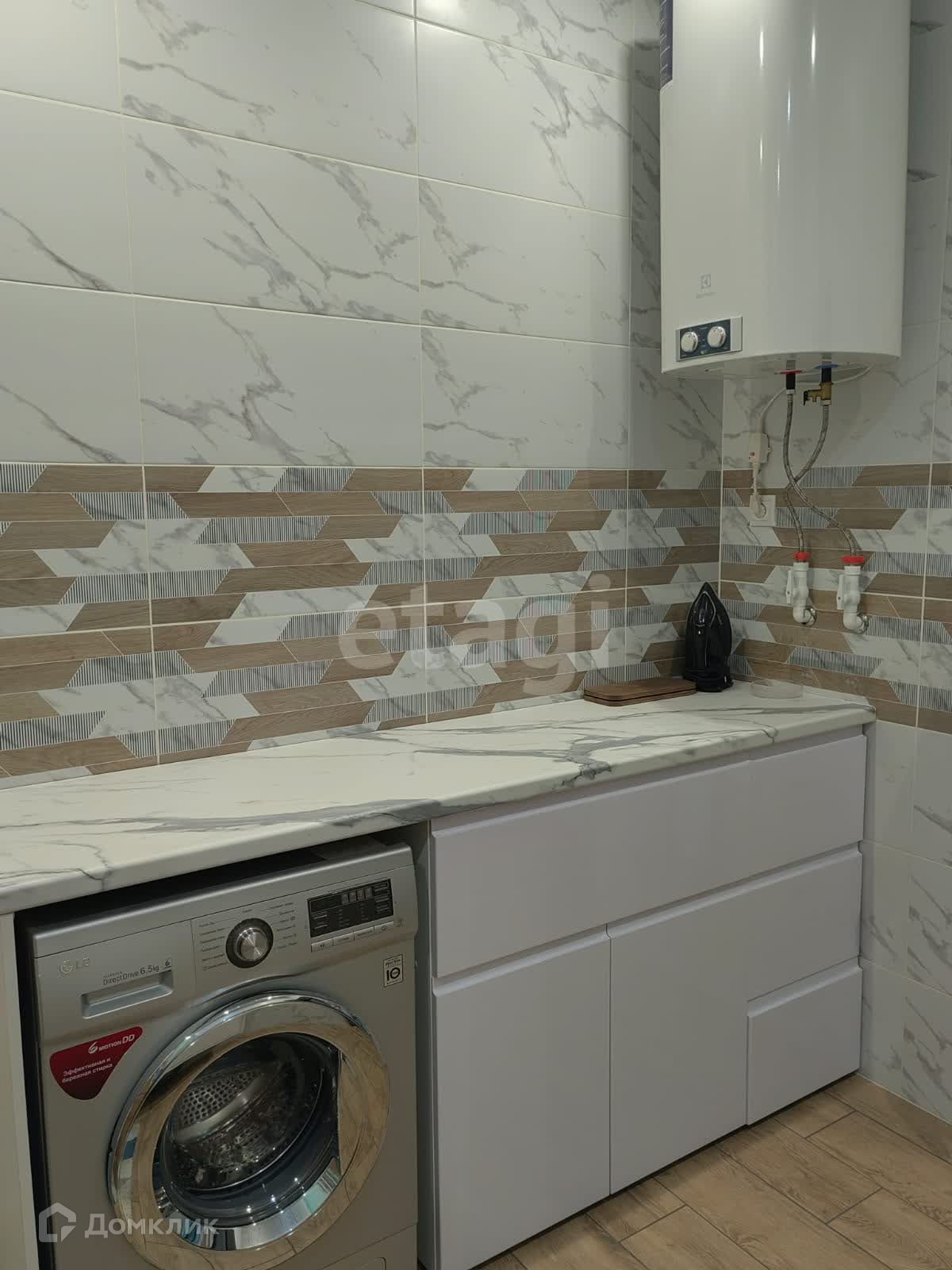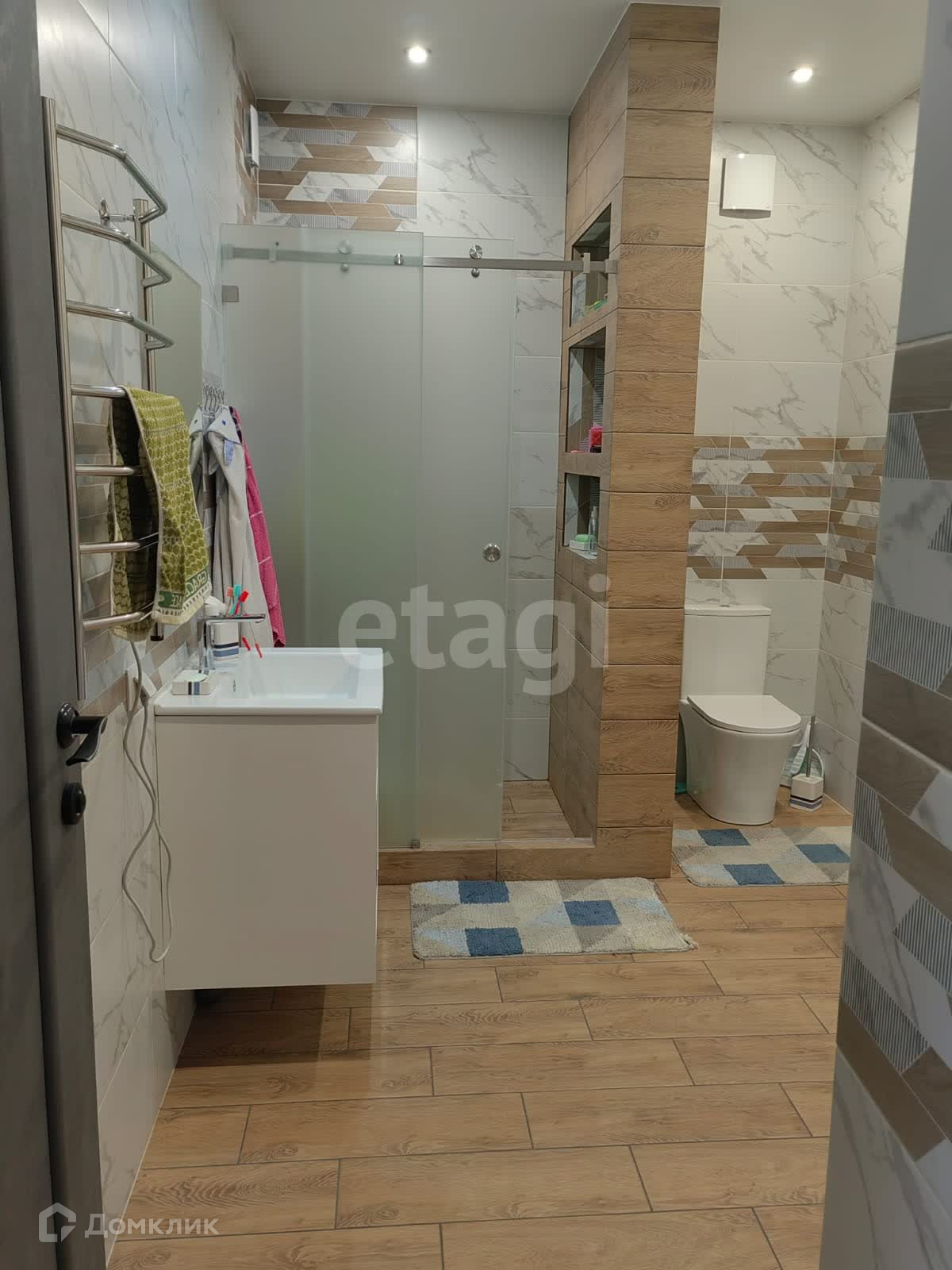 натяжные потолки, санузел в кафеле.