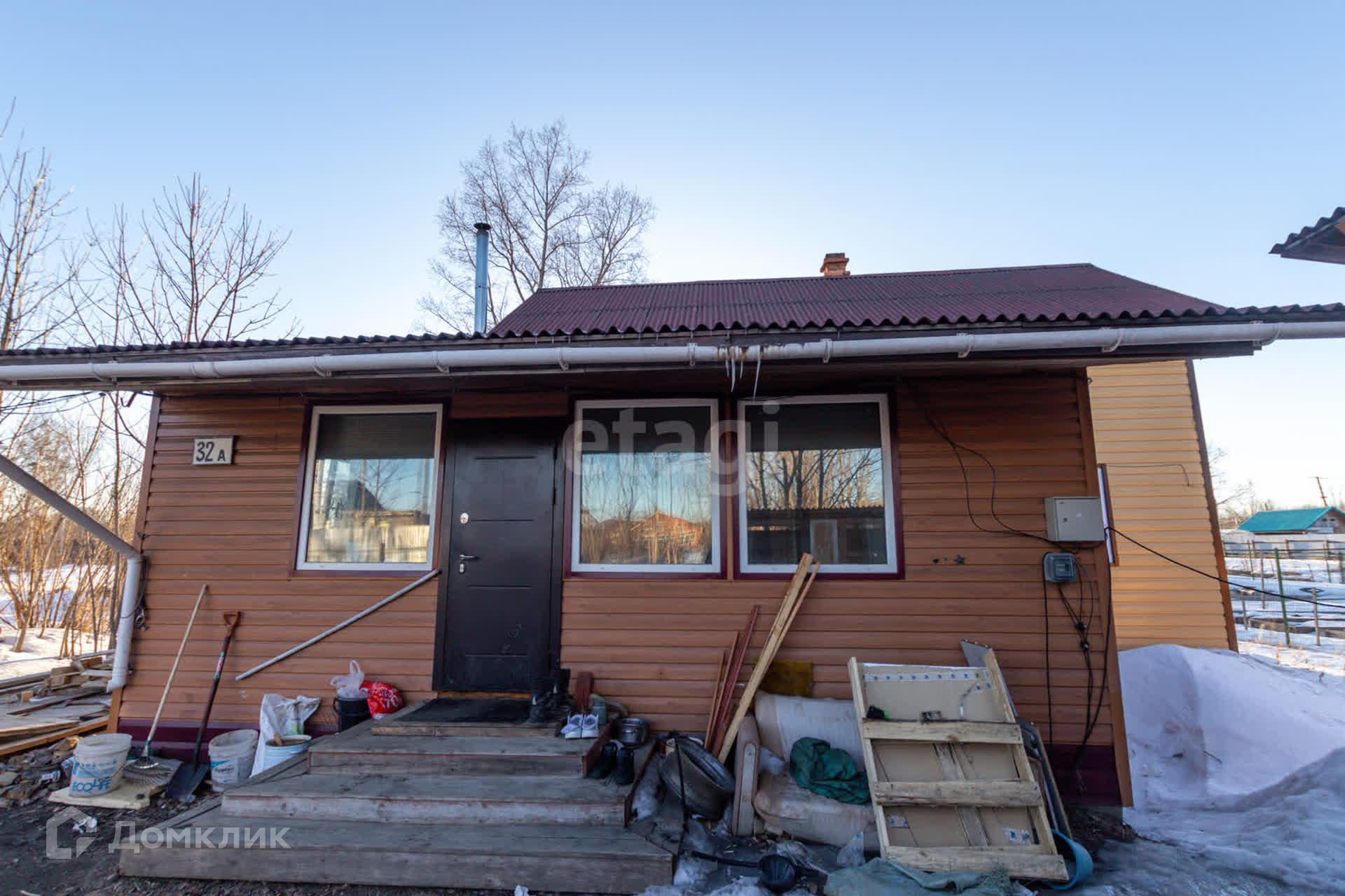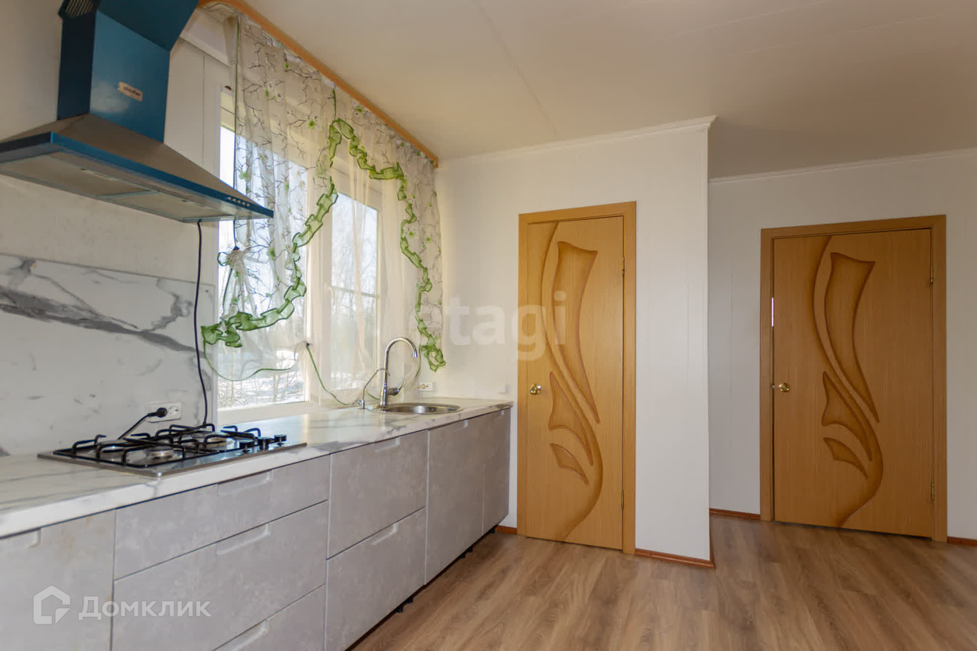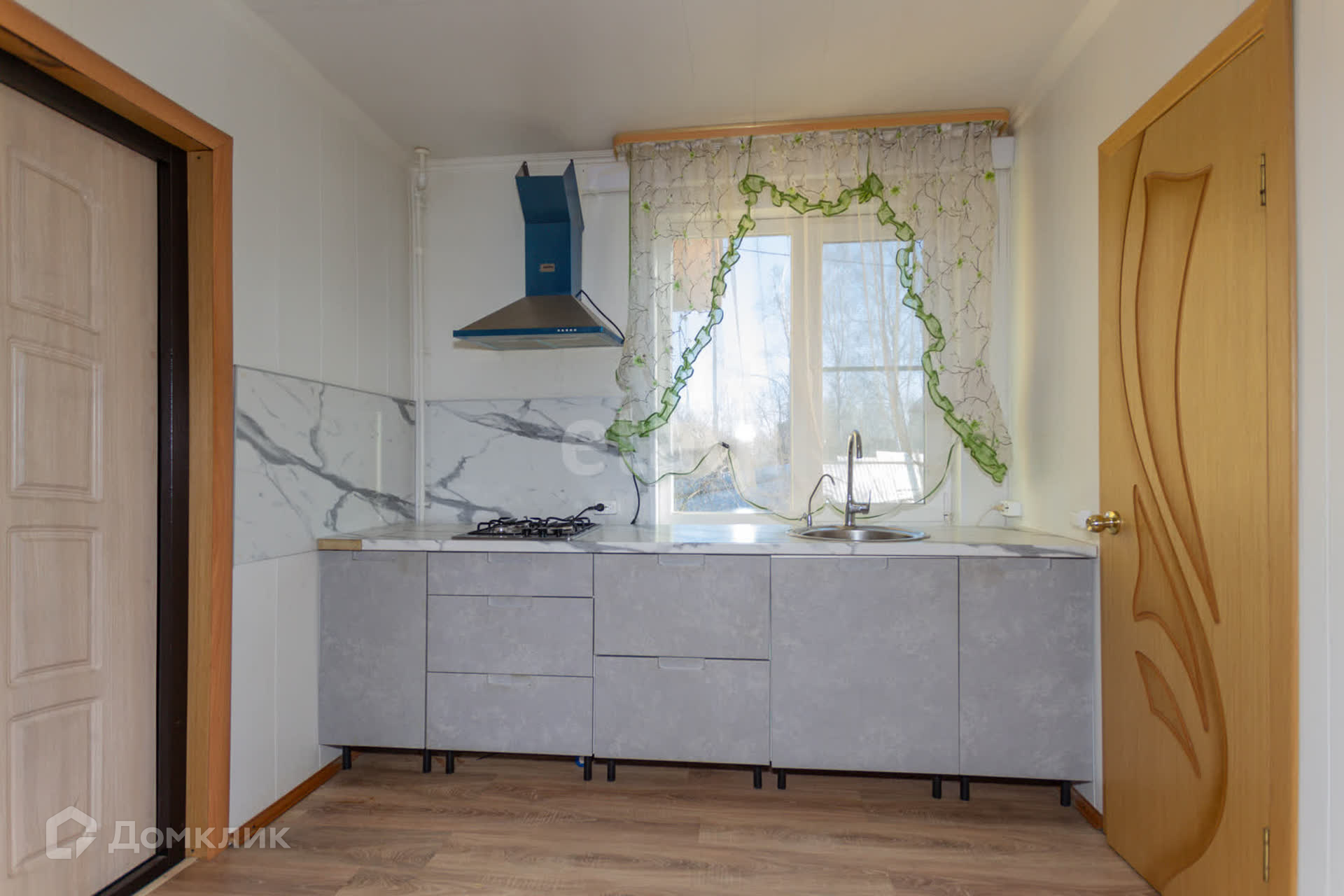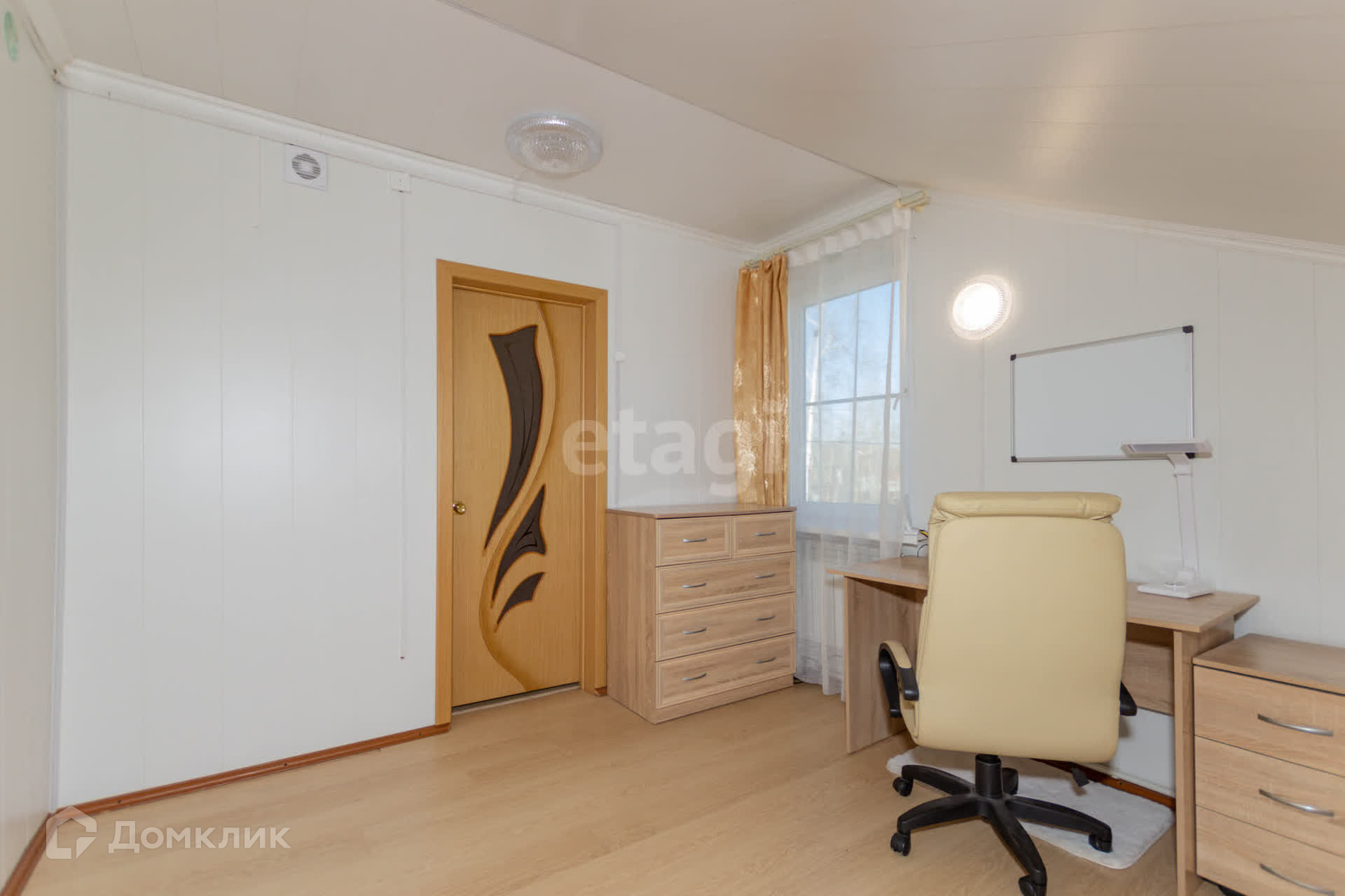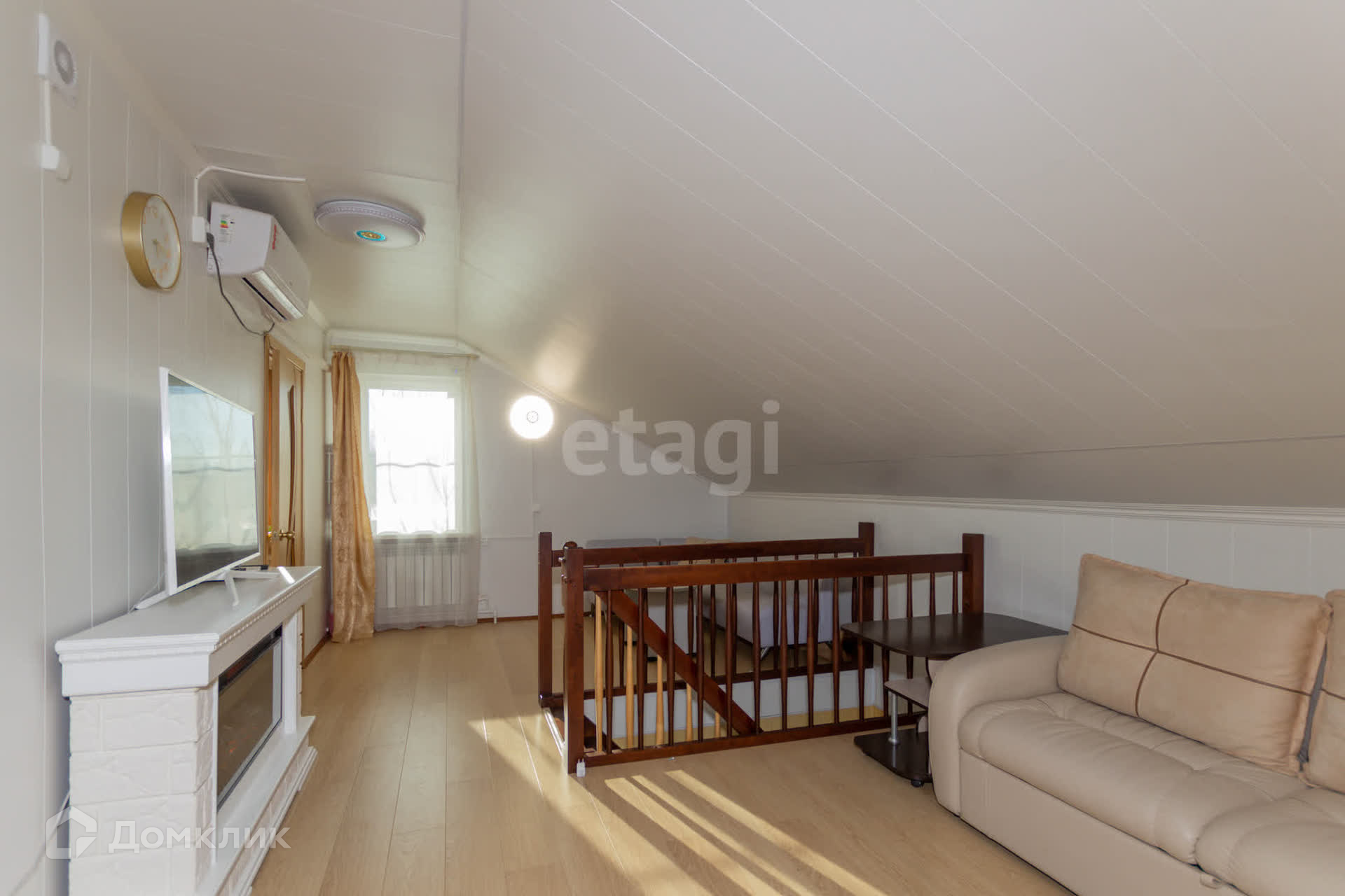 На стенах и потолке деревоплита, на полу ламинат, лестница из дерева. К дому пристроена утепленная веранда 40 кв.м с кухонной зоной.