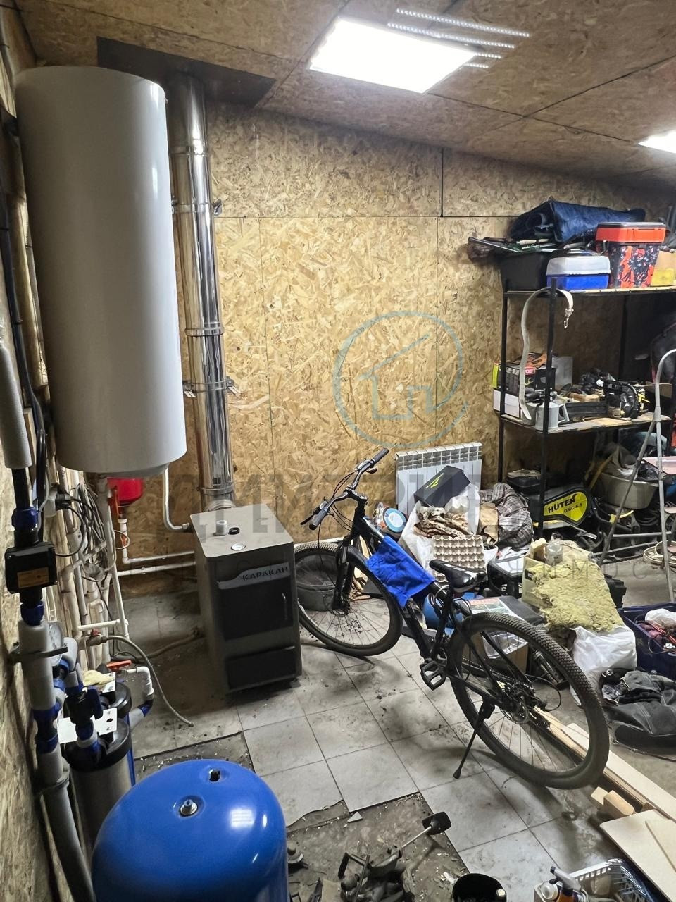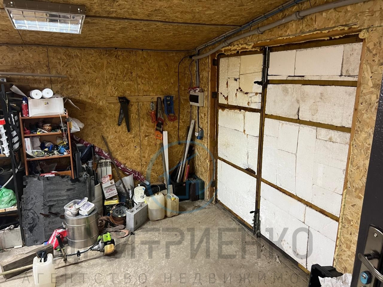 Из прихожей есть дверь для входа в теплый гараж, на данный момент используется как мастерская-склад, но можно и ставить машину.