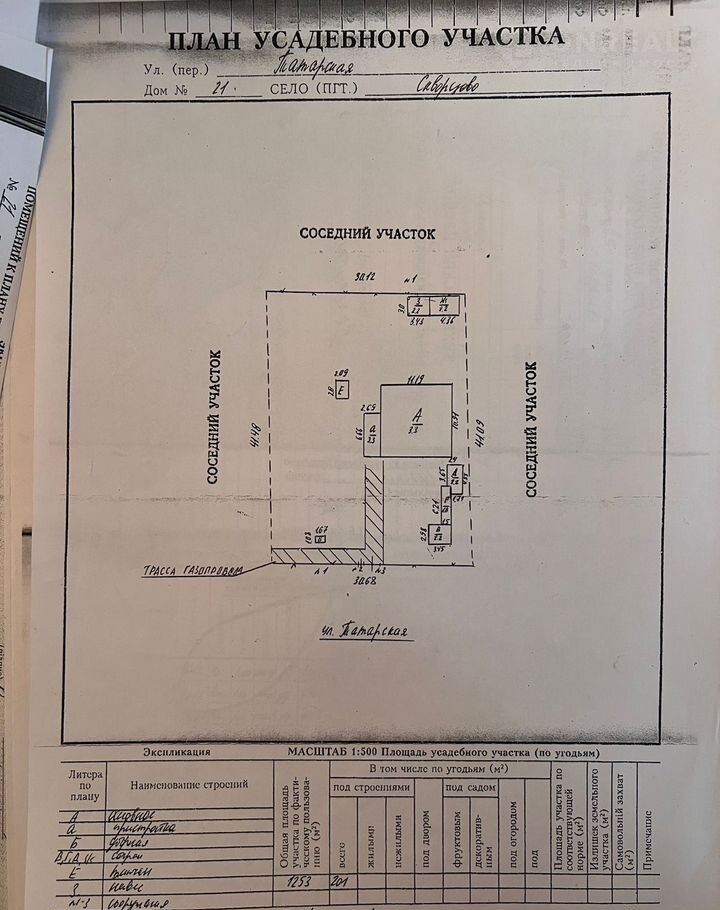 Участок ровный и правильной формы, огорожен со всех сторон.  Так же на участке имеются хоз постройки, фруктовый сад.