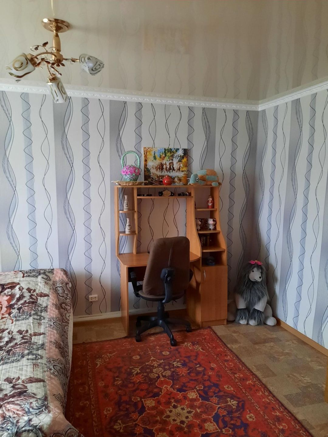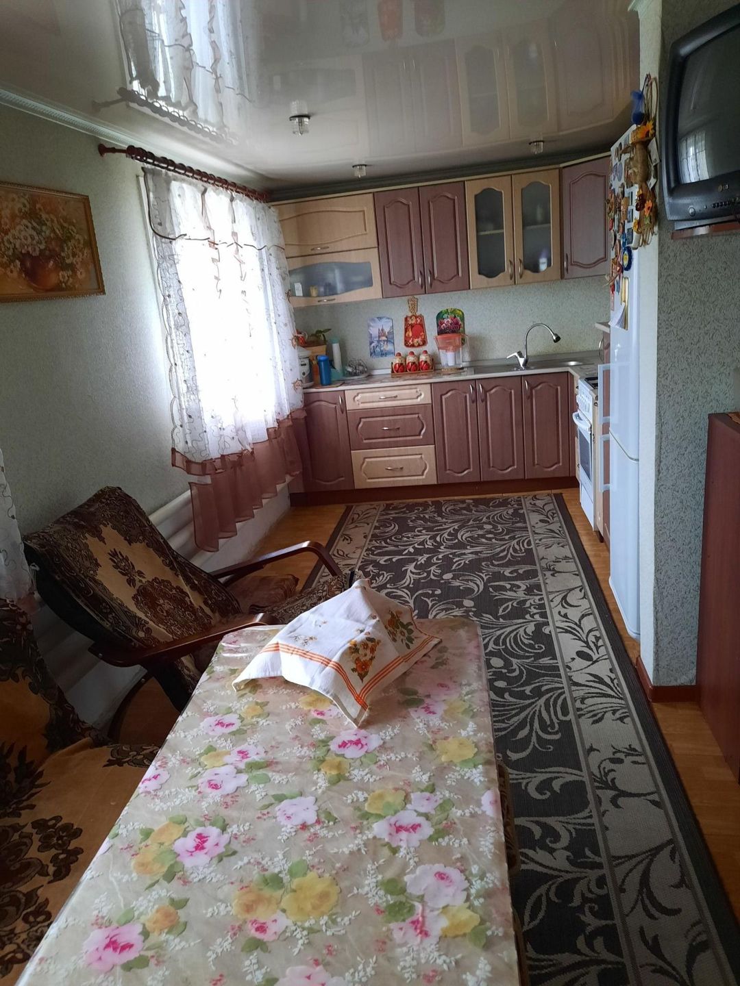 две спальни,зал гостинная, большая кухня,коридор,прихожая,кочегарка отдельно.Окна пластик,потолки натяжные.