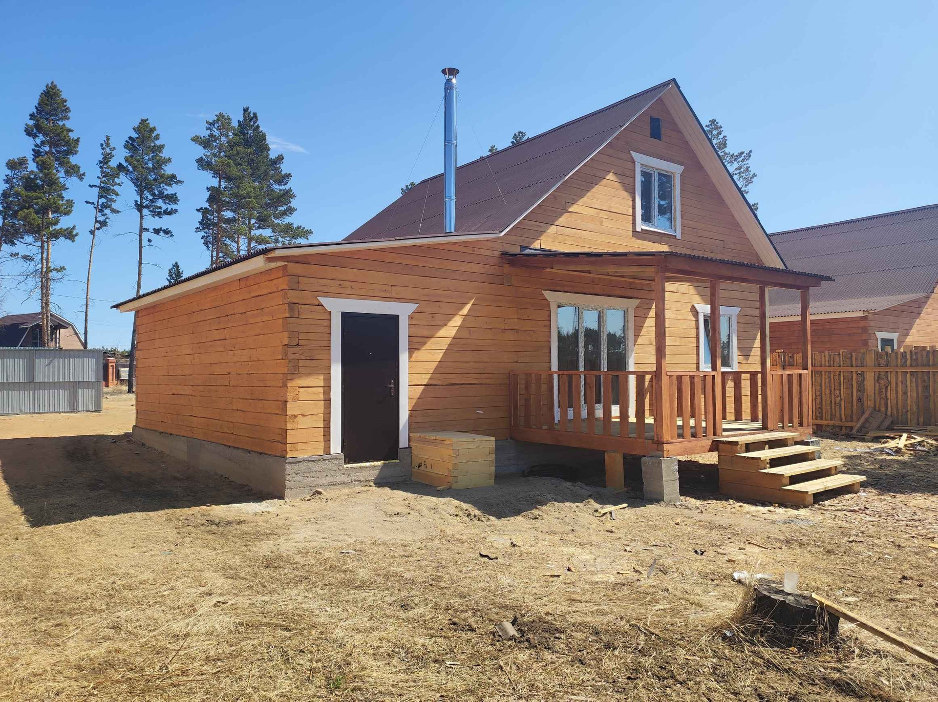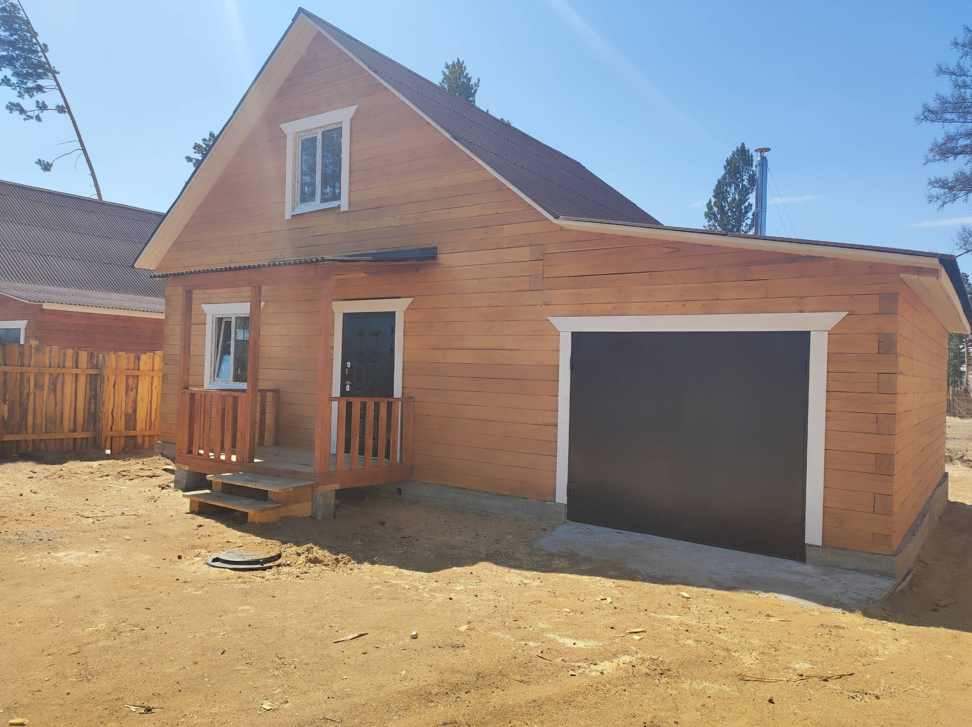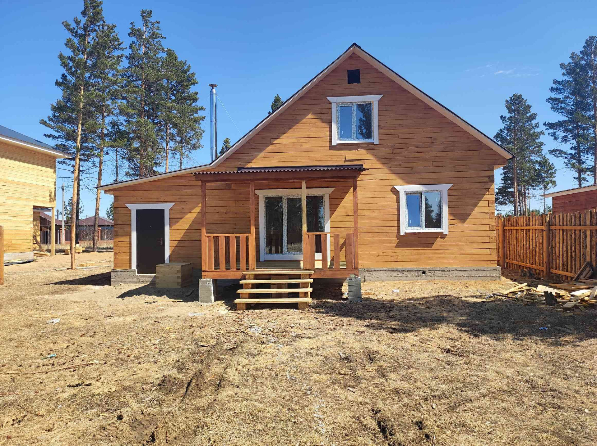 участок огорожен деревянным забором, лиц сторона профлист.
