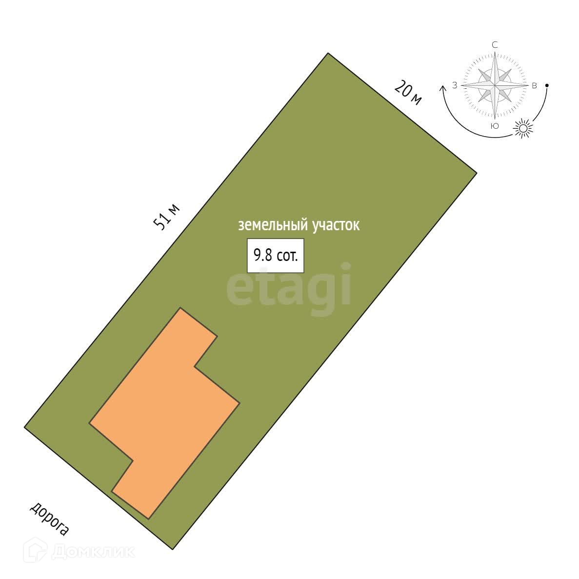 Площадь участка 9.8 сот.