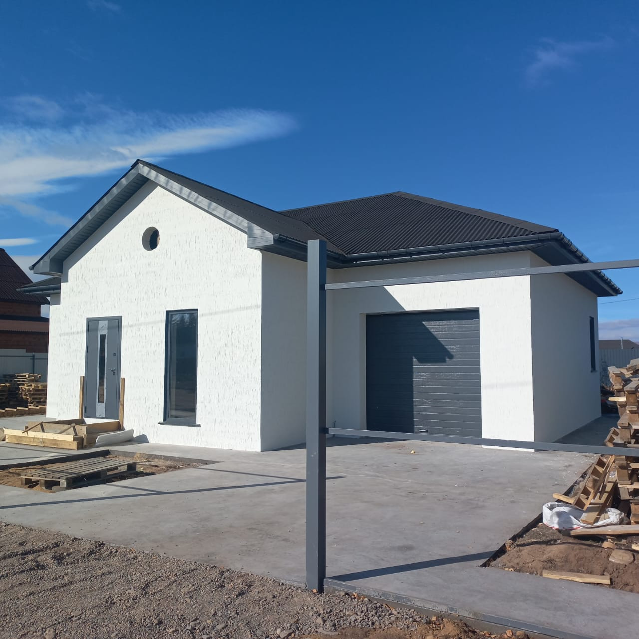 Продам отличный полностью благоустроенный дом. Расположен практически на конечной остановке 136-го маршрута, рядом с асфальтированной  дорогой, рядом остановка общественного транспорта,детская площадка, магазин, спортивный клуб, соседи уже живут на постоянной основе.  В доме две просторные комнаты и большая кухня гостинная, санузел 6 квадратов, большая прихожая. К дому подведено временное электричество, смонтирована вся проводка по дому, проложены все инженерные коммуникации- отопление от теплого пола, водоснабжение, водоотведение. Участок полностью огорожен забором из проф листа, ворота  консольные и калитка. Так же дому пристроен гараж с автоматическими воротами, котельная отгорожена перегородкой. В доме установлены качественные окна и двери. Есть терраса для отдыха с большим французским окном. Дом подходит под продажу по дальневосточной, семейной ипотеке. Проведем показ в любое, удобное для Вас время.